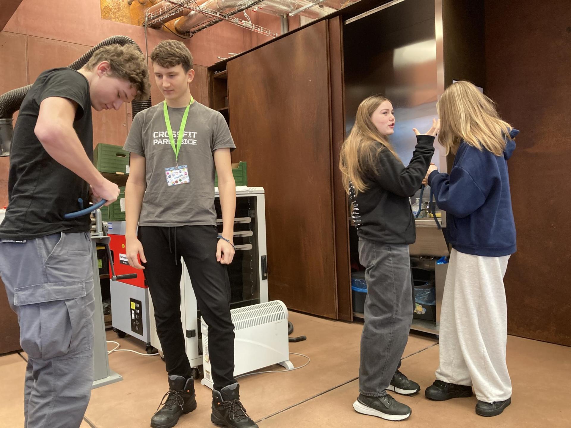 Dnes jsme ve Sféře navštívili program „Svět gumy“. Dozvěděli jsme se, že guma se vyrábí z přírodního kaučuku nebo z ropy. Přidávají se vulkanizační činidla (síra), plniva (uhlík), pojiva (sádra), změkčovadla, barviva atd. Vzniklá homogenní směs se dá do extrudéru (použili jsme mlýnek na maso).