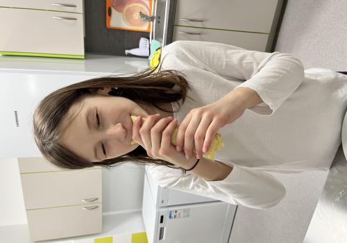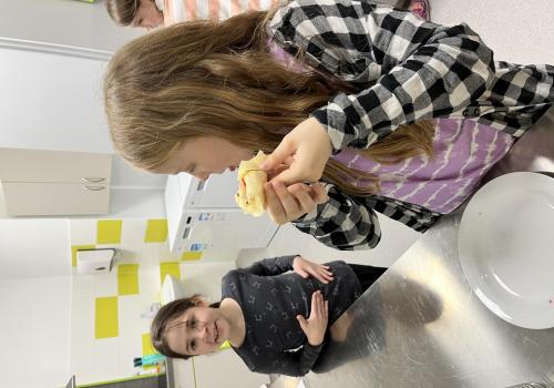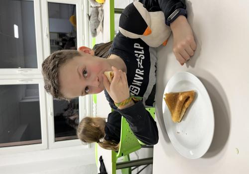 Nakonec se nám celkem povedly. Dali jsme si je s jahodovou marmeládou. Pak jsme hráli tichou poštu a s křikem došli do třídy. Všichni vyděšení z prázdné školy jsme zalezli do spacáků. ![]()