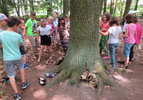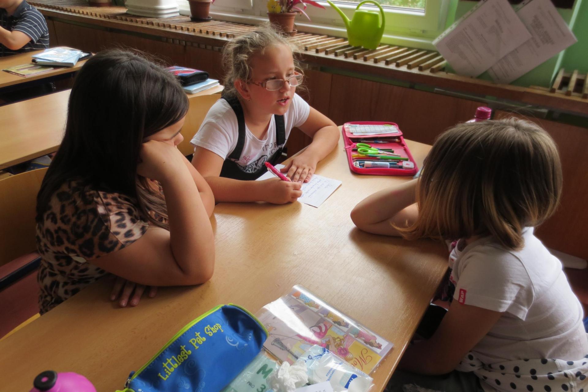 Páteční tvořivé činnosti jsme strávili v lese. Děti ve skupinách stavěly, co je jen napadlo. Obchodní domy, hotely, dům pro mravence, tábořiště aj. Při psaní to potom hezky sepsaly ;-)