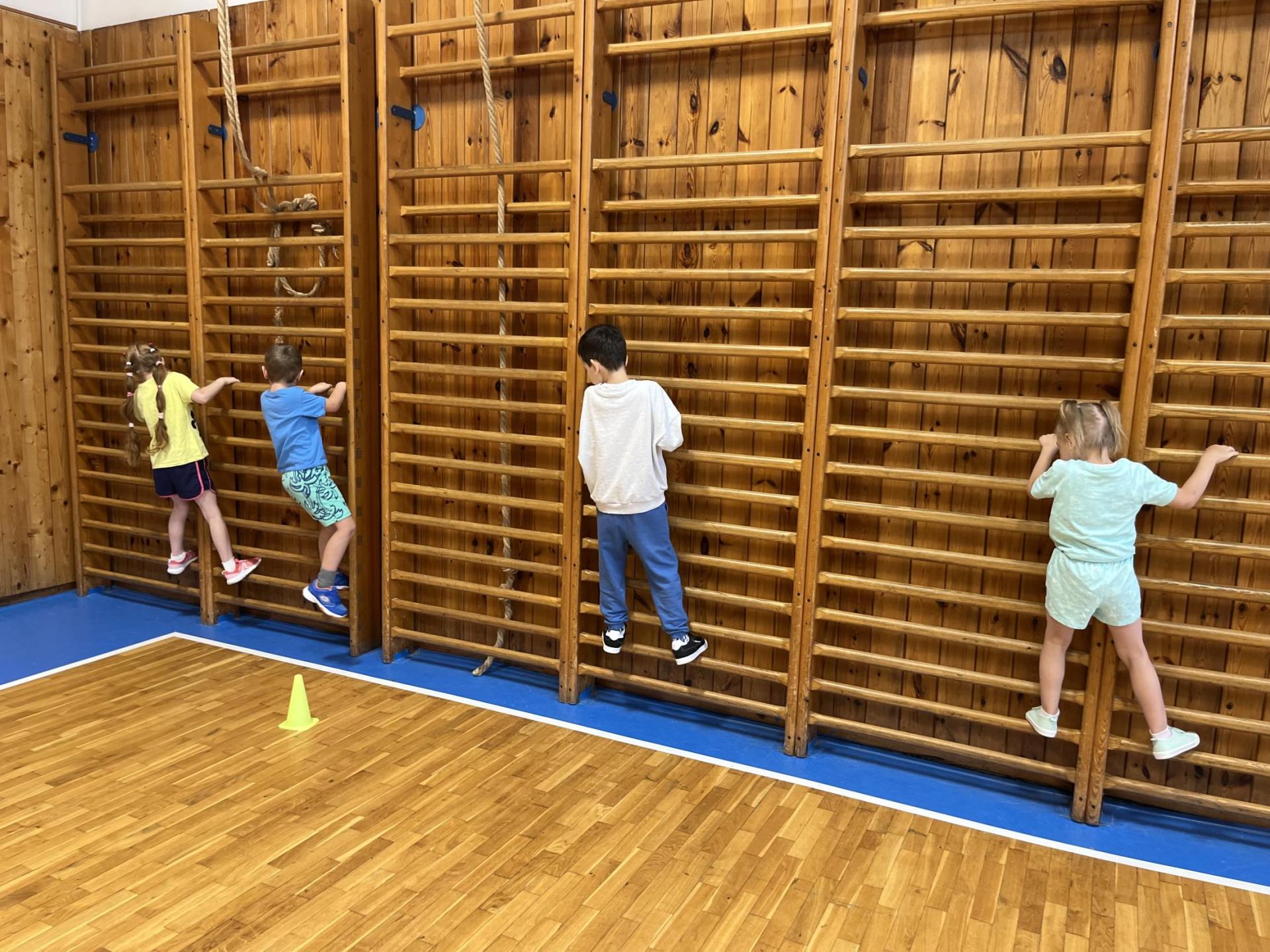 Dnes jsme si v tělocvičně připravili pořádnou „opičí dráhu“. Děti se s nadšením zapojily do všech úkolů – šplhaly po žebřinách, přeskakovaly překážky, trénovaly rovnováhu i vytrvalost. Opičí dráha nebyla jen o pohybu, ale i o rozvoji důležitých dovedností. Posilovali jsme sílu, koordinaci, odvahu a soustředění, a také schopnost překonávat výzvy.