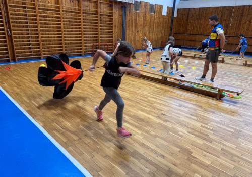 Každé čtyři týdny se nám mění trenéři a zároveň sporty, které si zkoušíme. Poznáváme spousty nových průpravných her, využíváme pomůcky, které ve škole k dispozici bohužel nejsou. Zlepšují se nám dovednosti a moc nás to baví!
