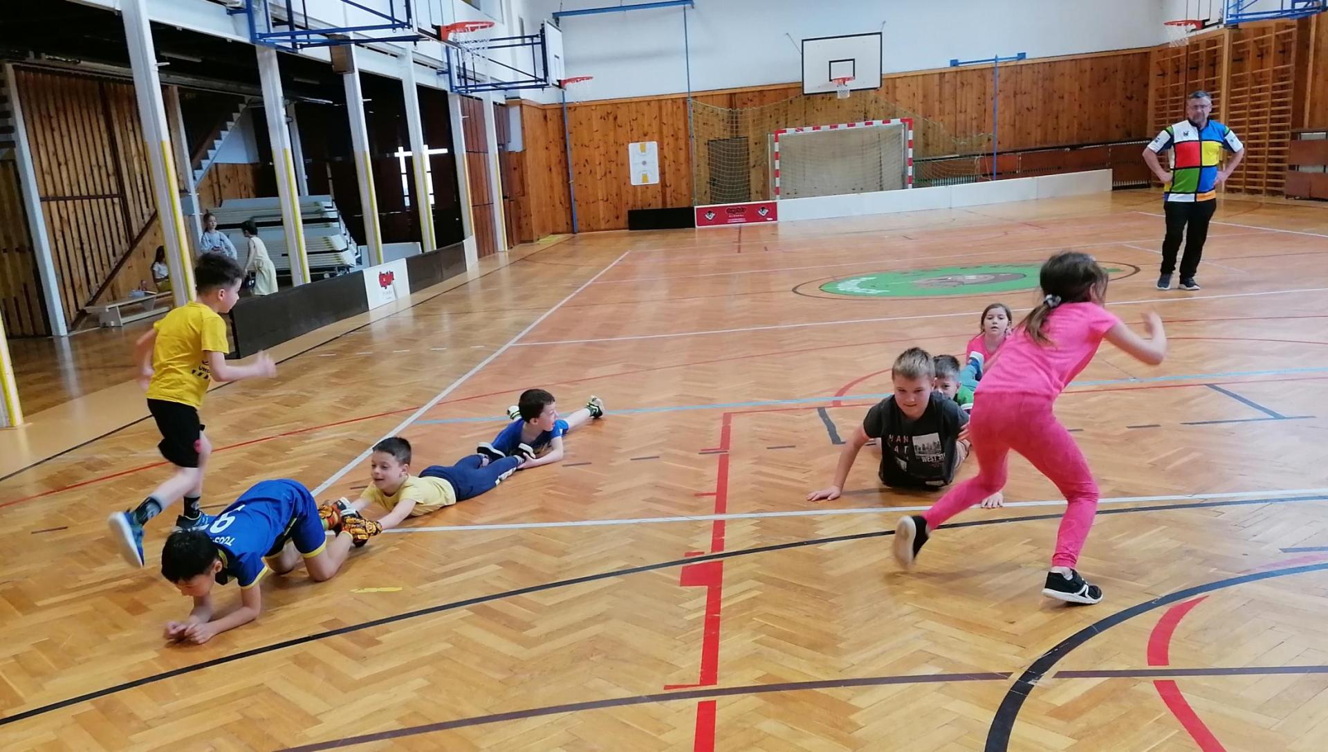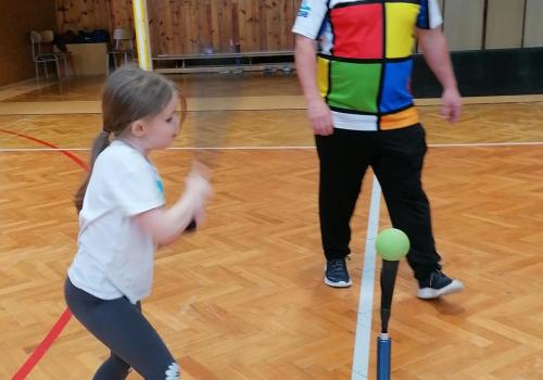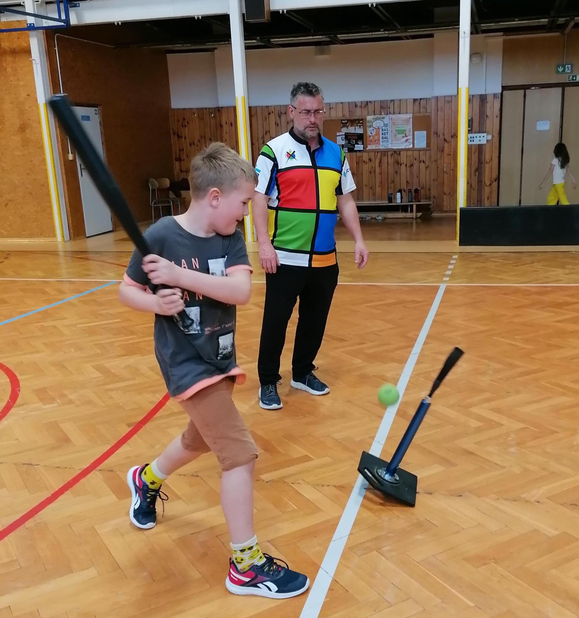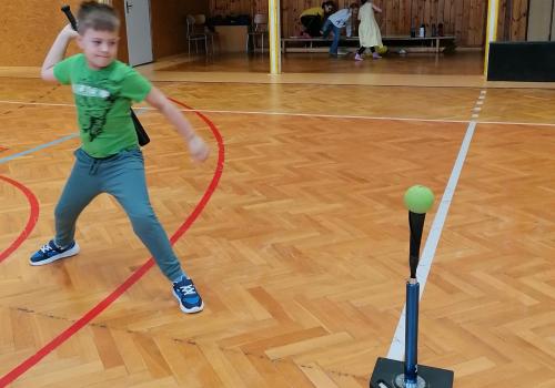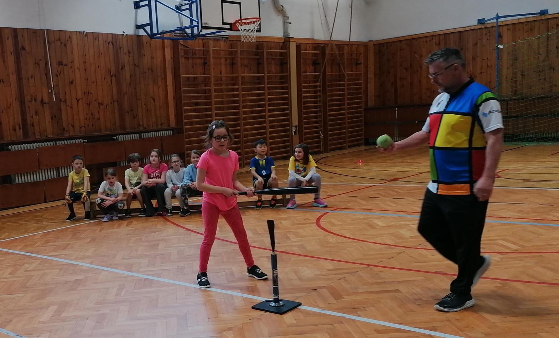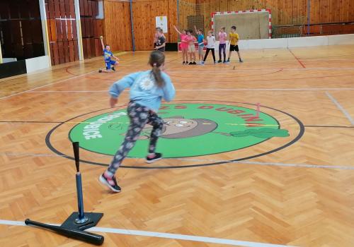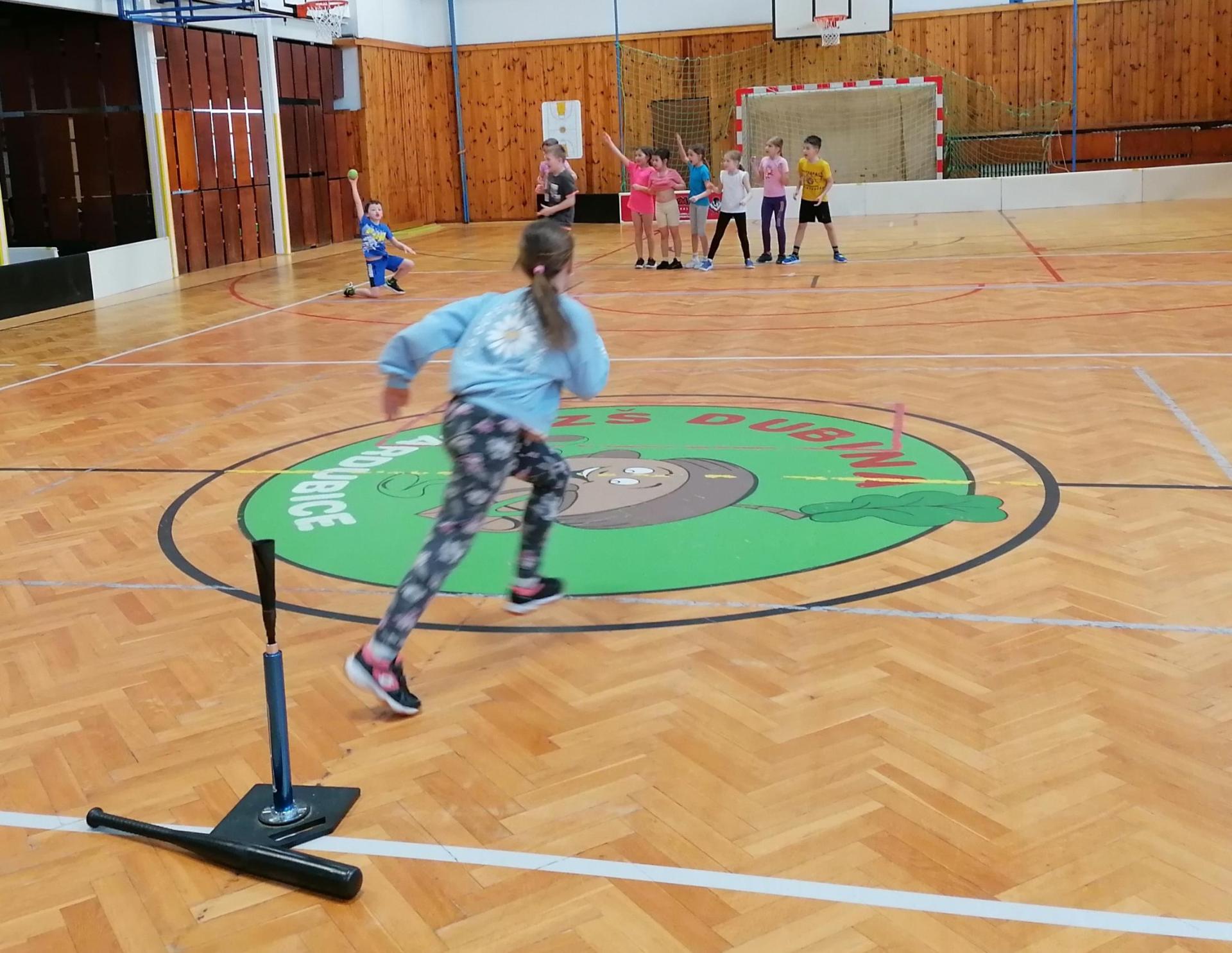 Bílý míček letí polem, hráči běží pěkně kolem.