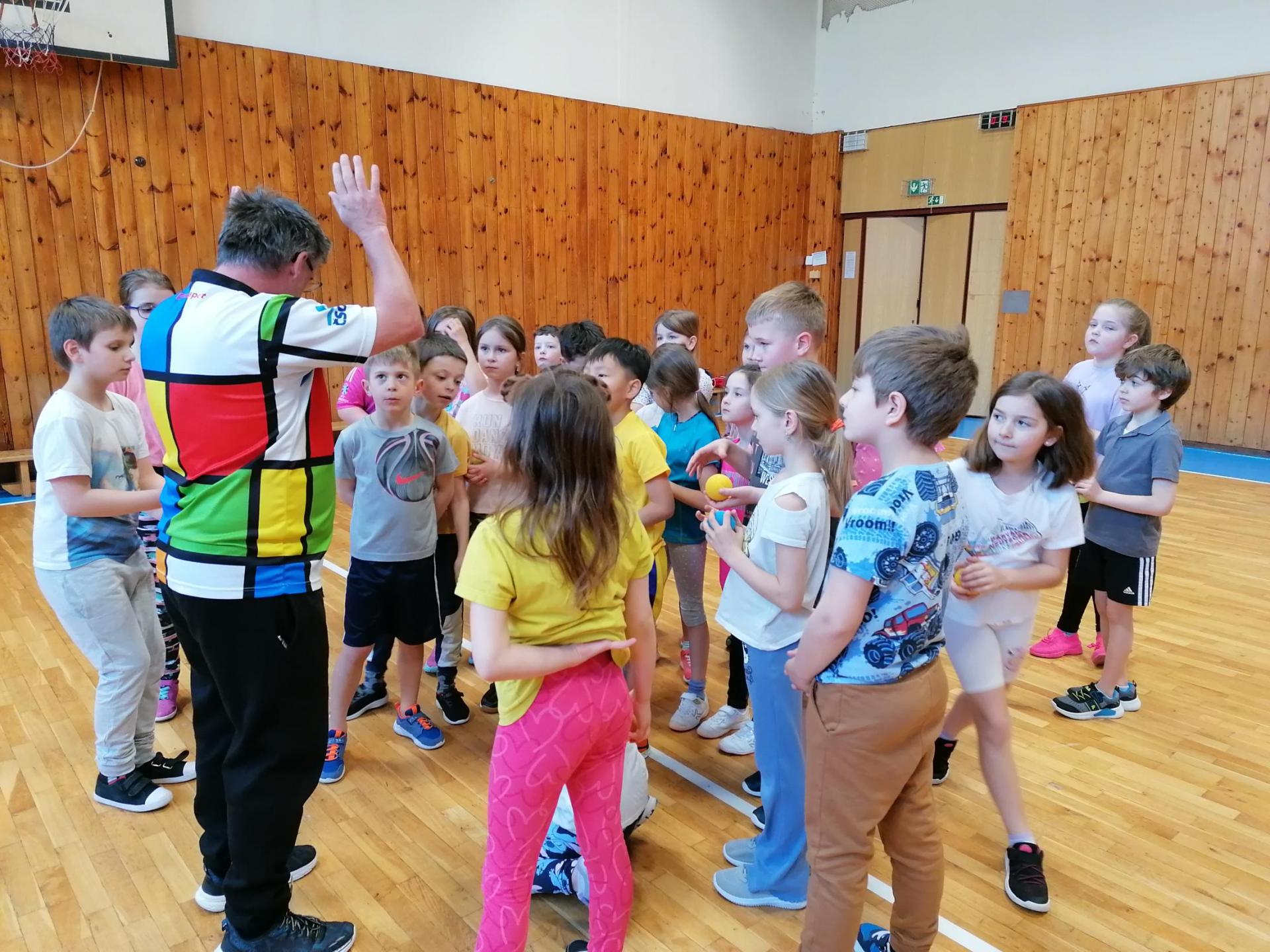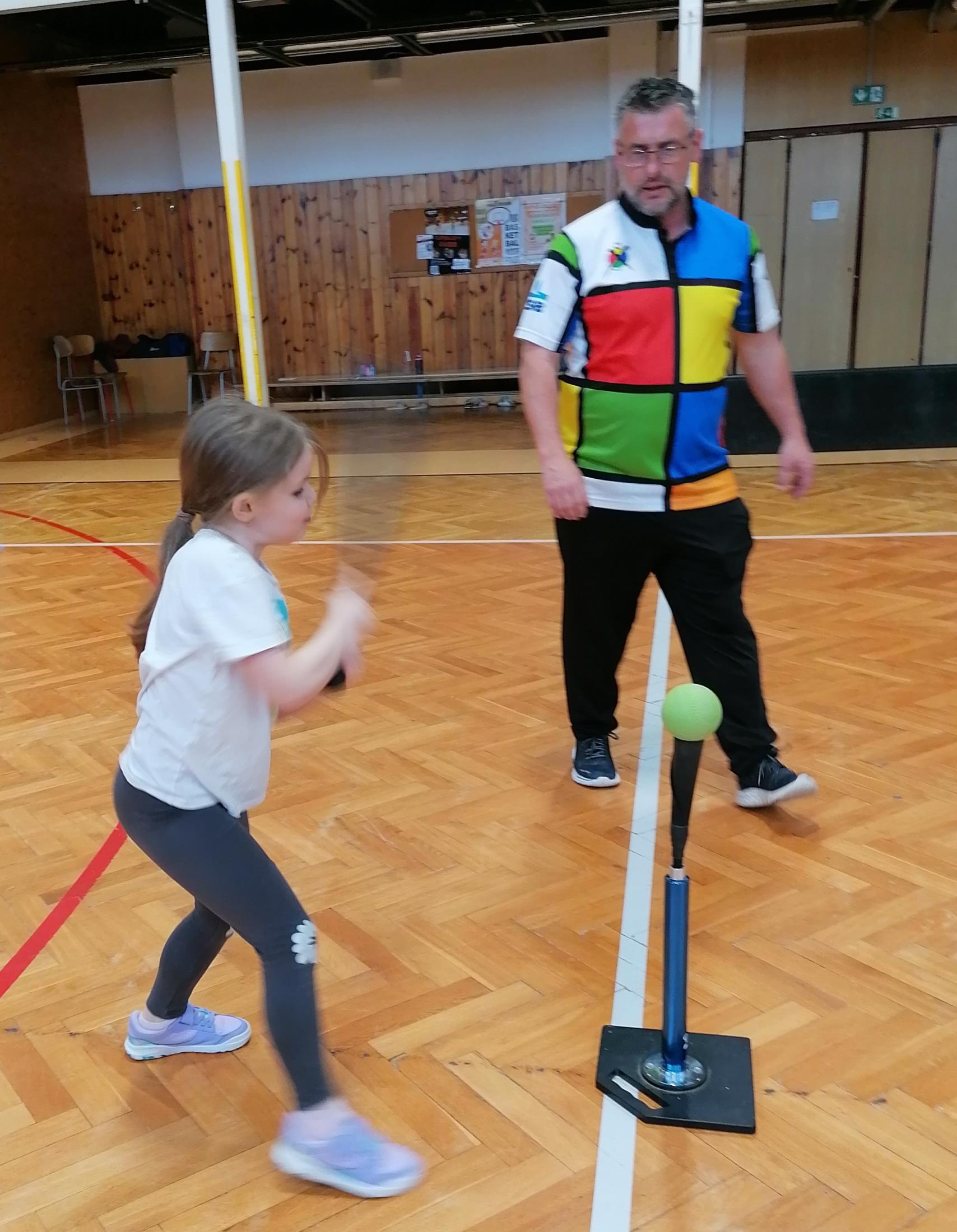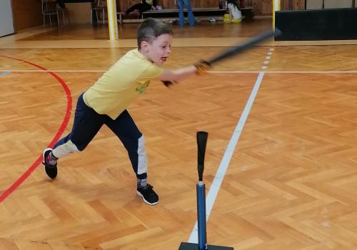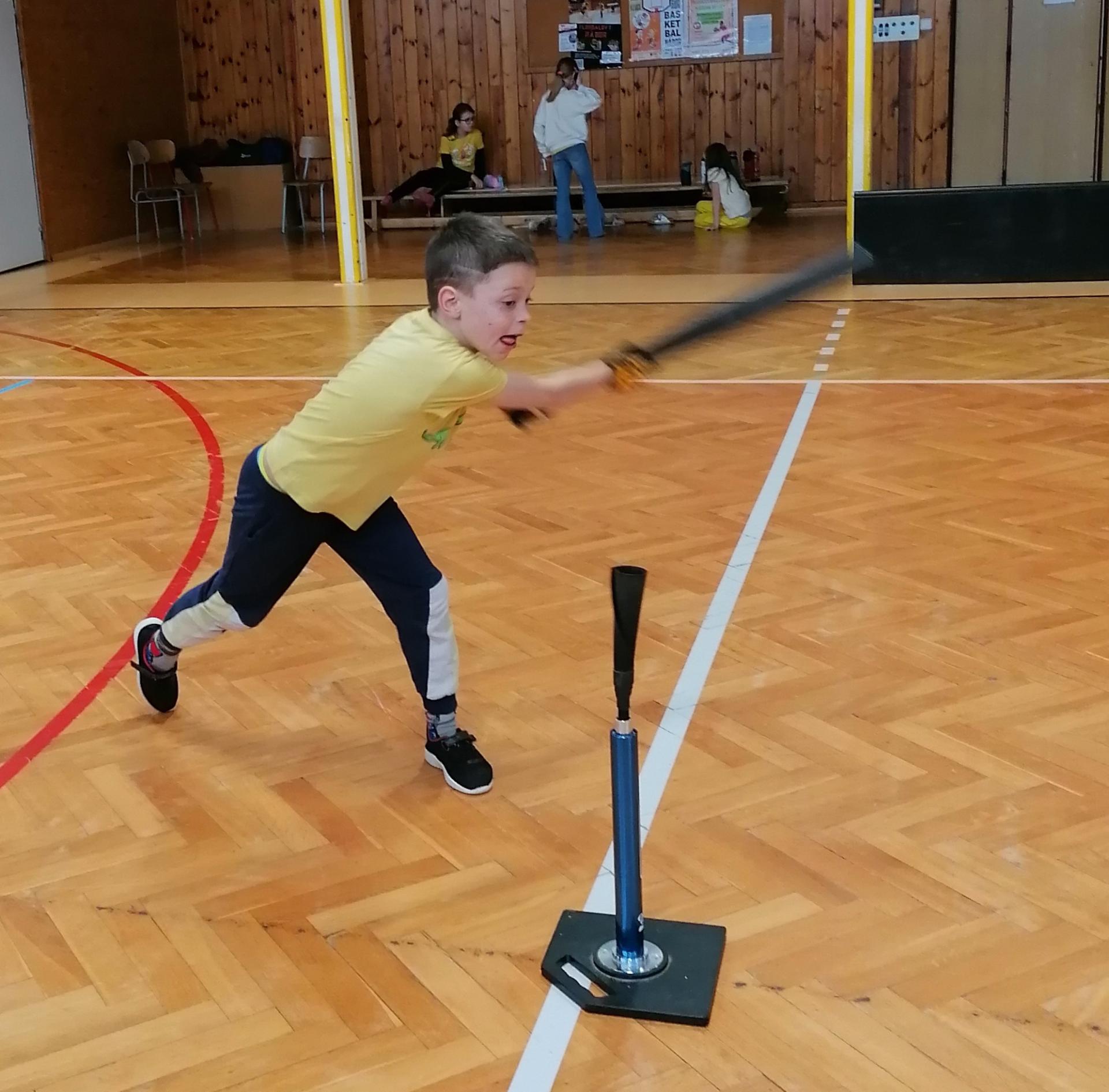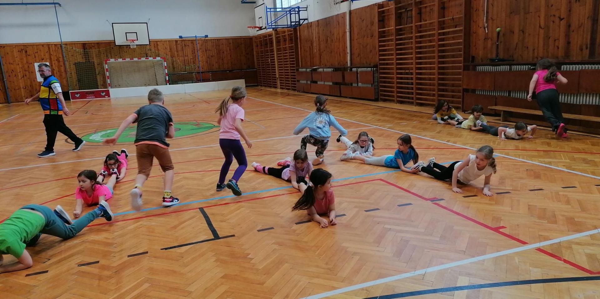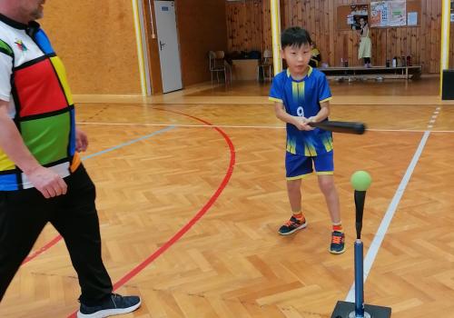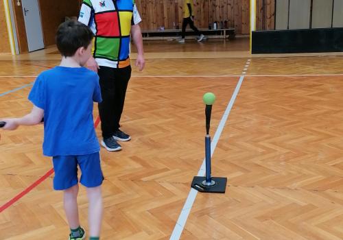 Bílý míček letí polem, hráči běží pěkně kolem.