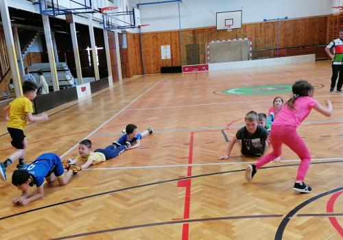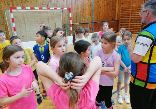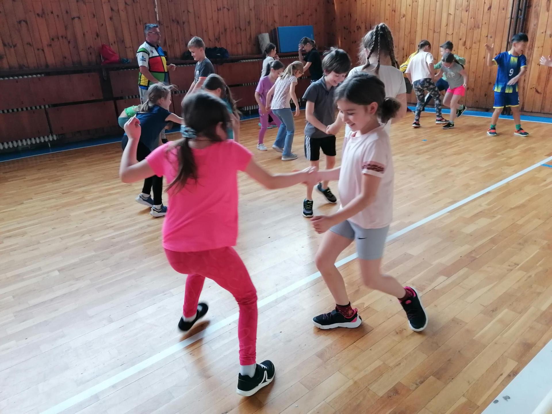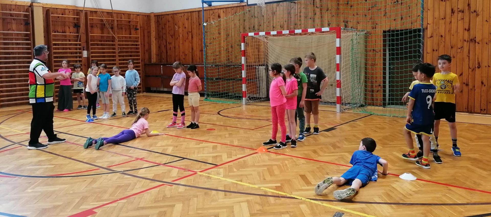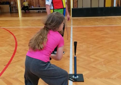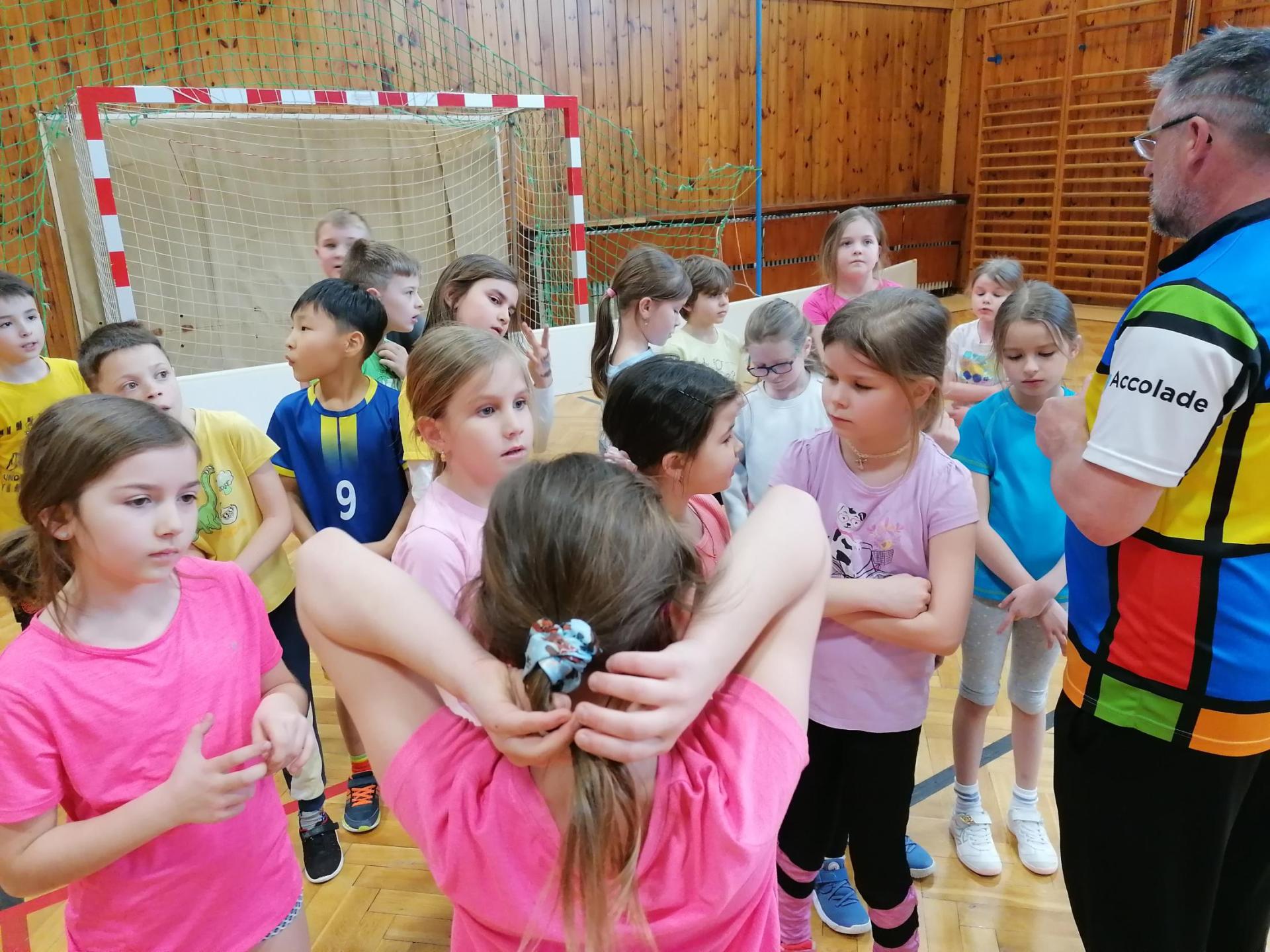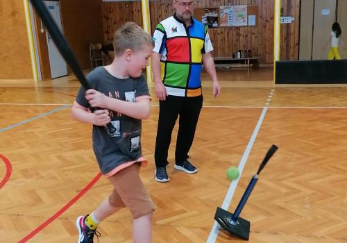 Bílý míček letí polem, hráči běží pěkně kolem.