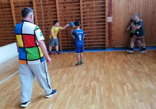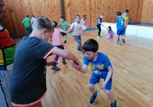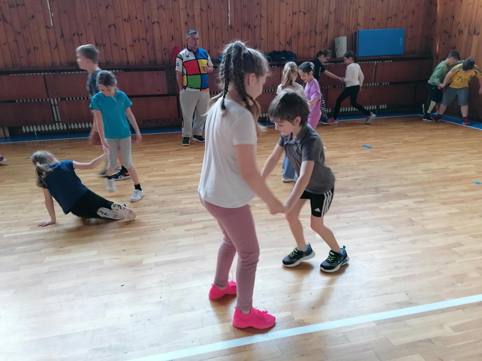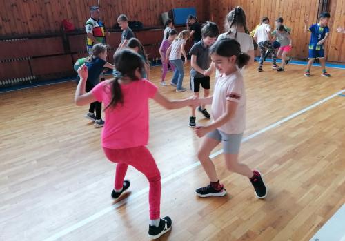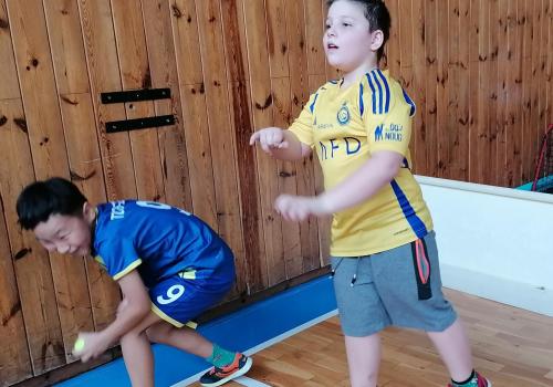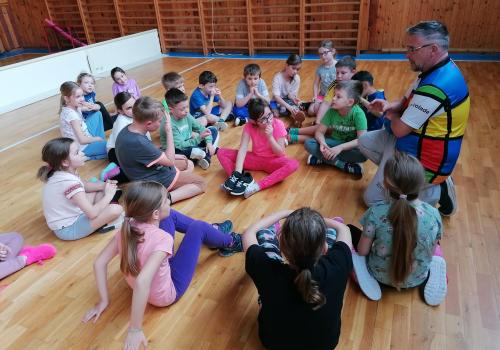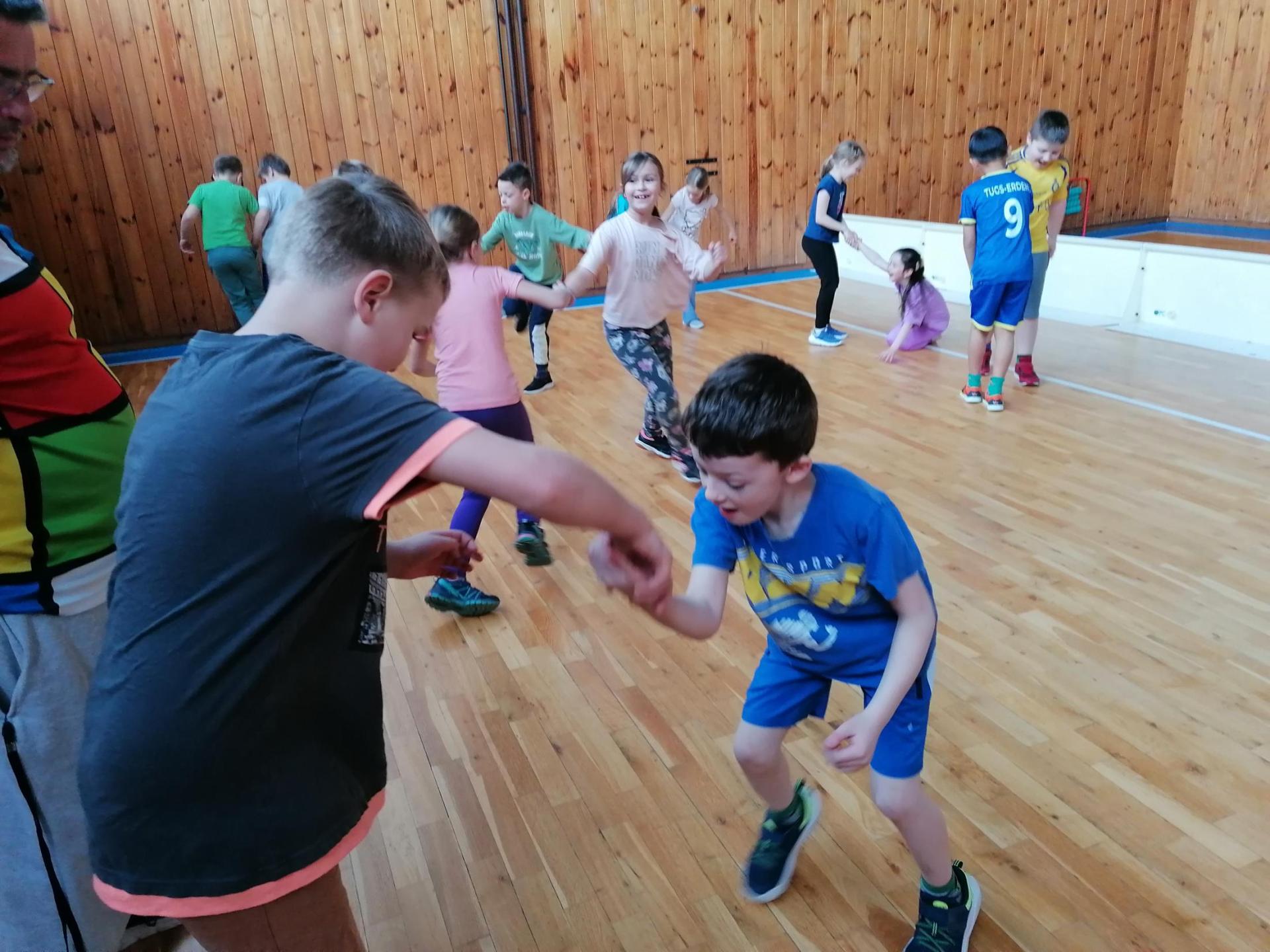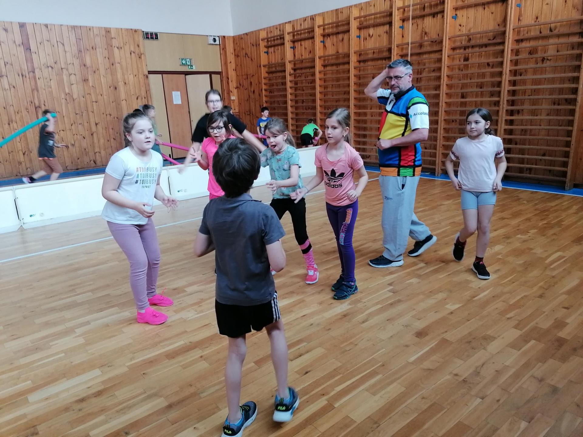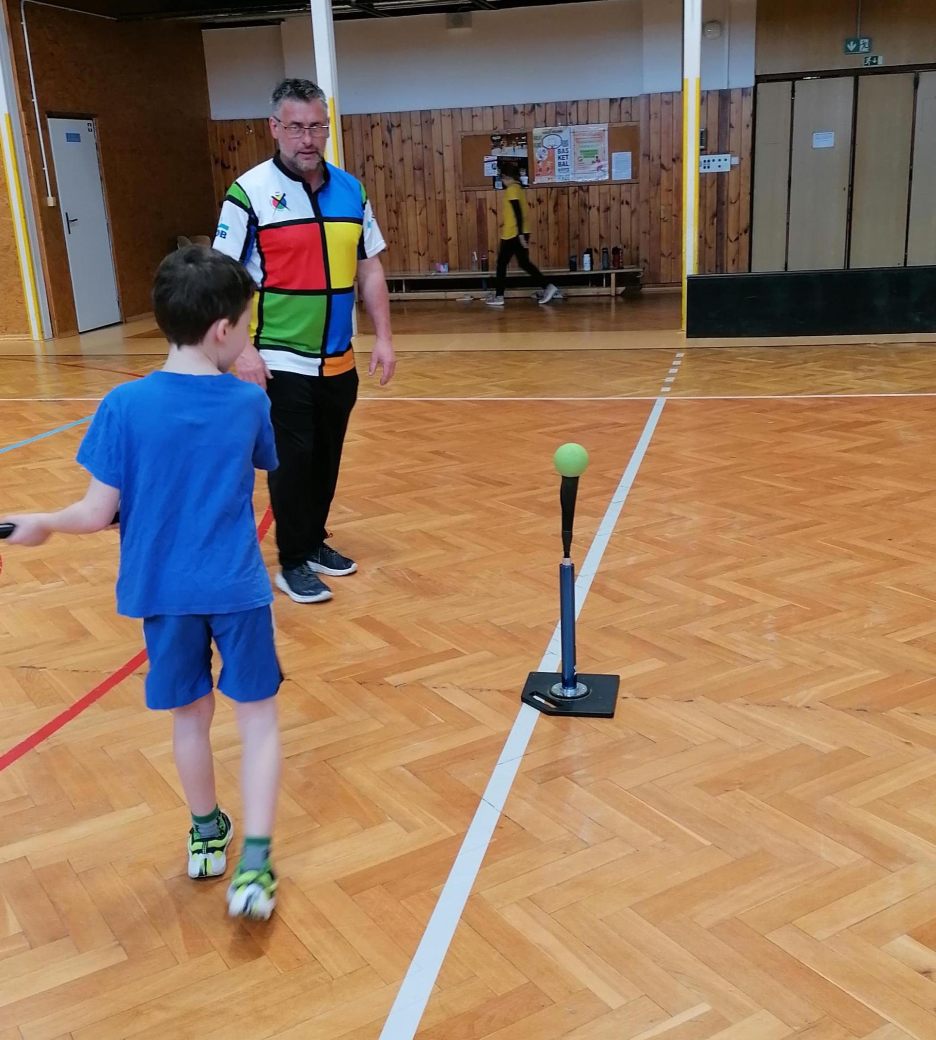 Bílý míček letí polem, hráči běží pěkně kolem.