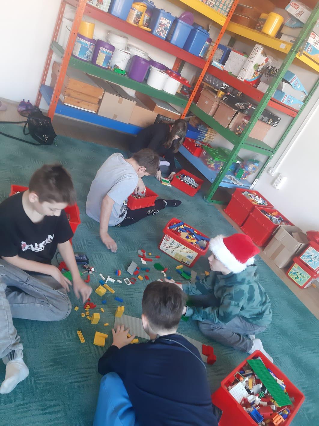 V rámci pracovních činností se aktivně zbytek naší třídy zapojil do roztřídění stavebnic LEGO v učebně, kde paní učitelky zpracovávaly inventarizaci.