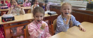 Ve čtvrtek 23.10. nás navštívily lektorky a povídaly si s námi o tom, jak se starat o své zuby a dutinu ústní. Společně jsme si vyčistili zuby a pak jsme si mohli vyzkoušet nanést na zuby plak indikátor. Byla to sranda, měli jsme z toho modro fialové zuby.