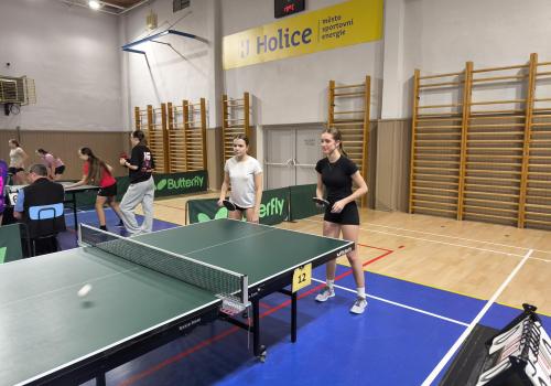 Naše škola se zúčastnila okresního kola soutěže ve stolním tenise, které proběhlo ve sportovní hale v Holicích.