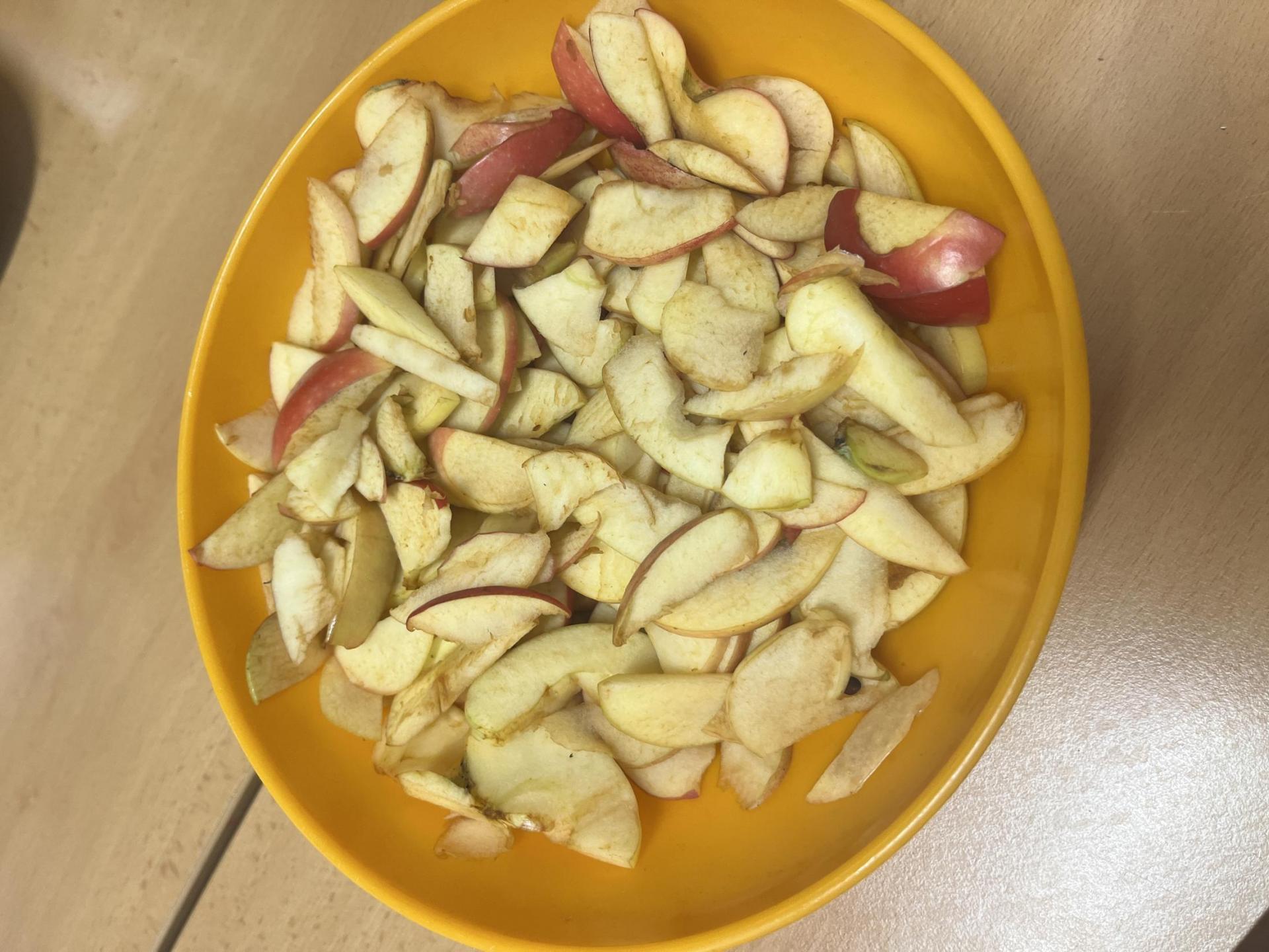 Každá skupinka pracovala na něčem jiném. K tomu jsme krájeli jablka, a kreslili skupinovou mapu Evropy, abychom si vyzdobili třídu. Dnes jsme z jablek udělali parádní křížaly. To co jsme stihli vysušit, jsme stihli také sníst! Křížaly byly opravdu výborné. ![]()