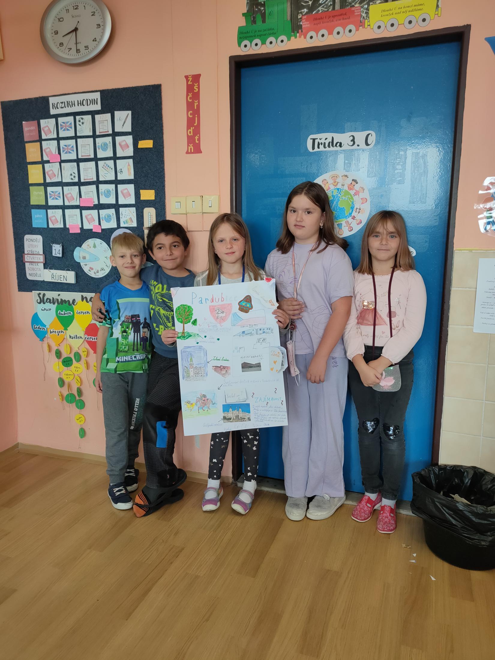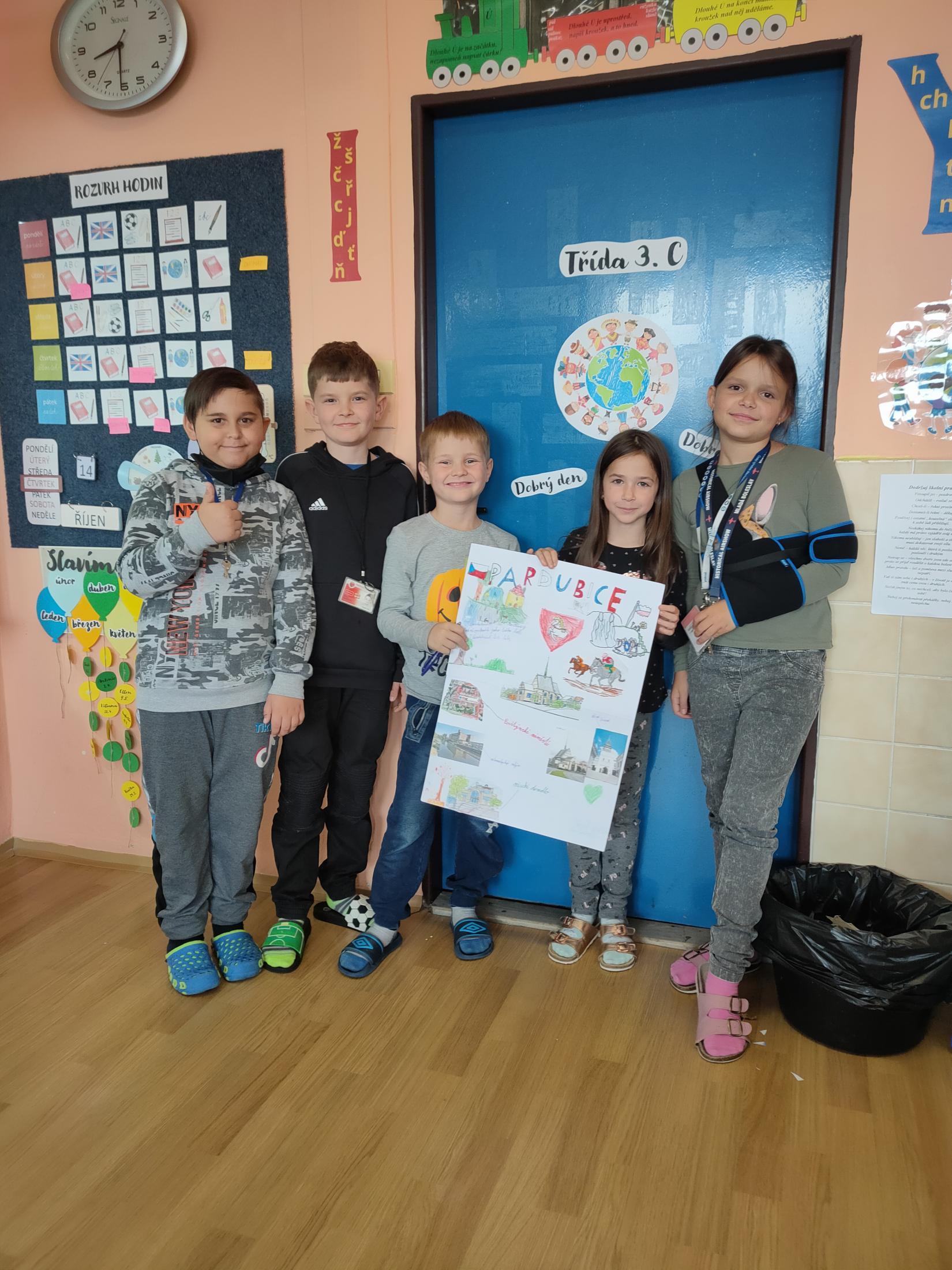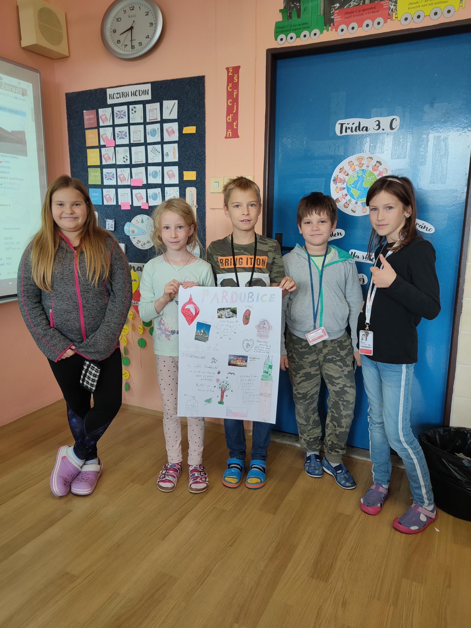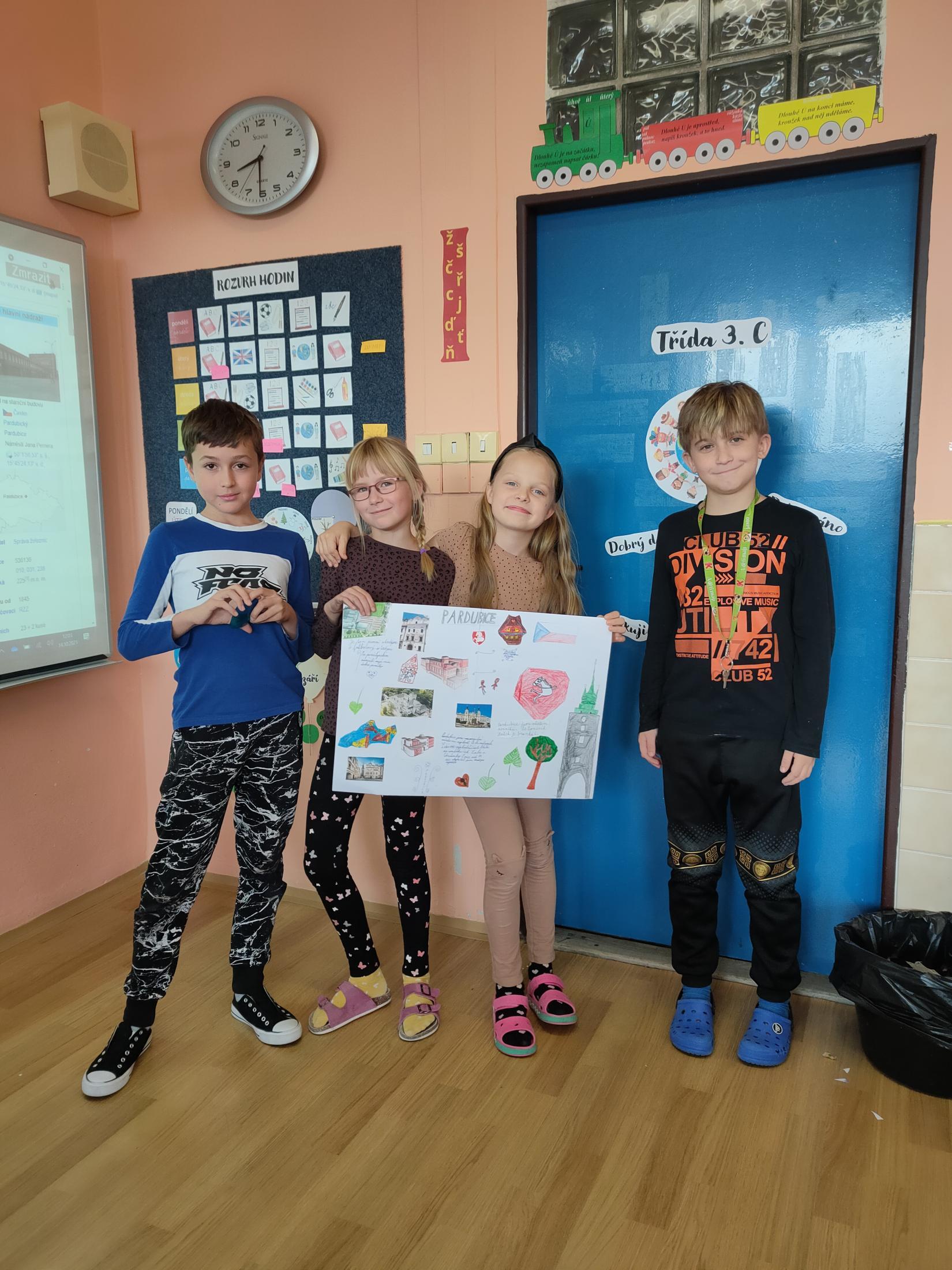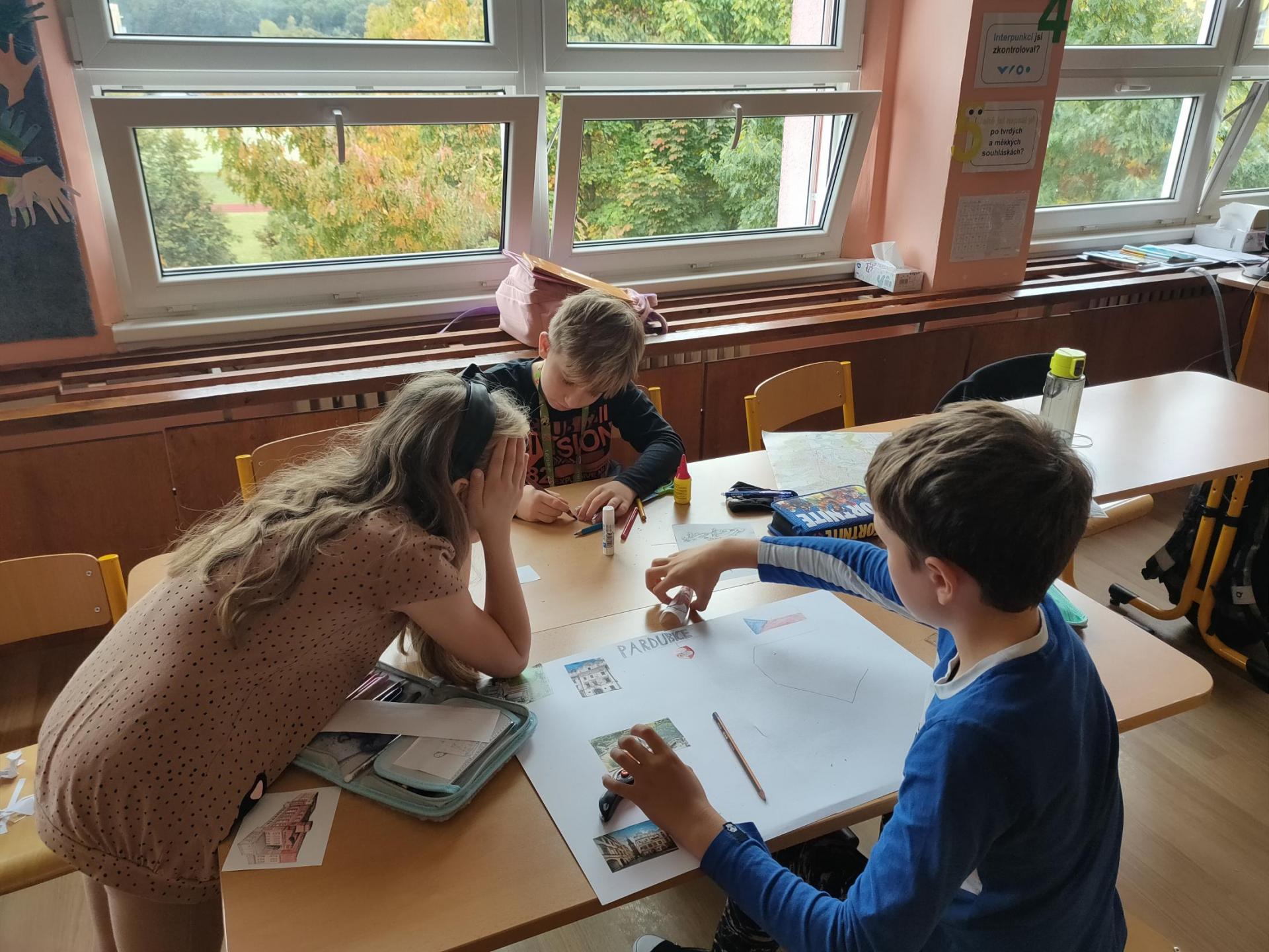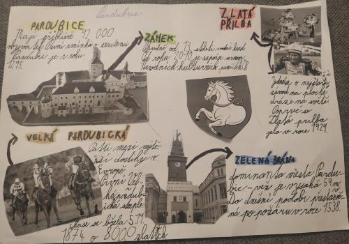 Učíme se spolupracovat. Ve skupinkách jsme vytvářeli plakáty o Pardubicích, vyhledávali informace a kreslili obrázky. Moc se nám to povedlo! Doma v karanténě to ve skupině moc nešlo, ale i tak jsme to zvládli.