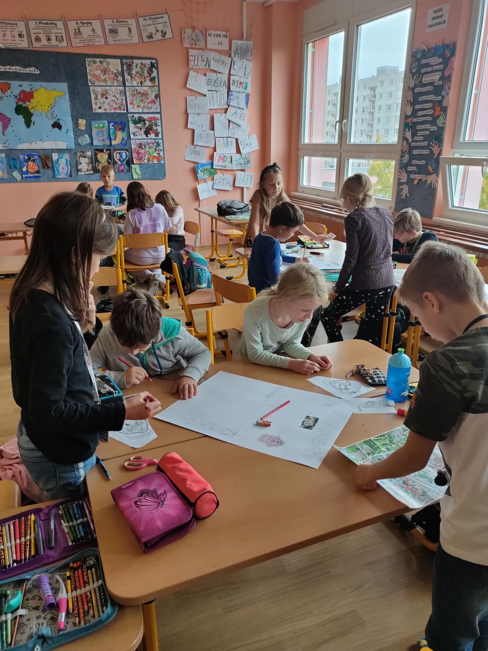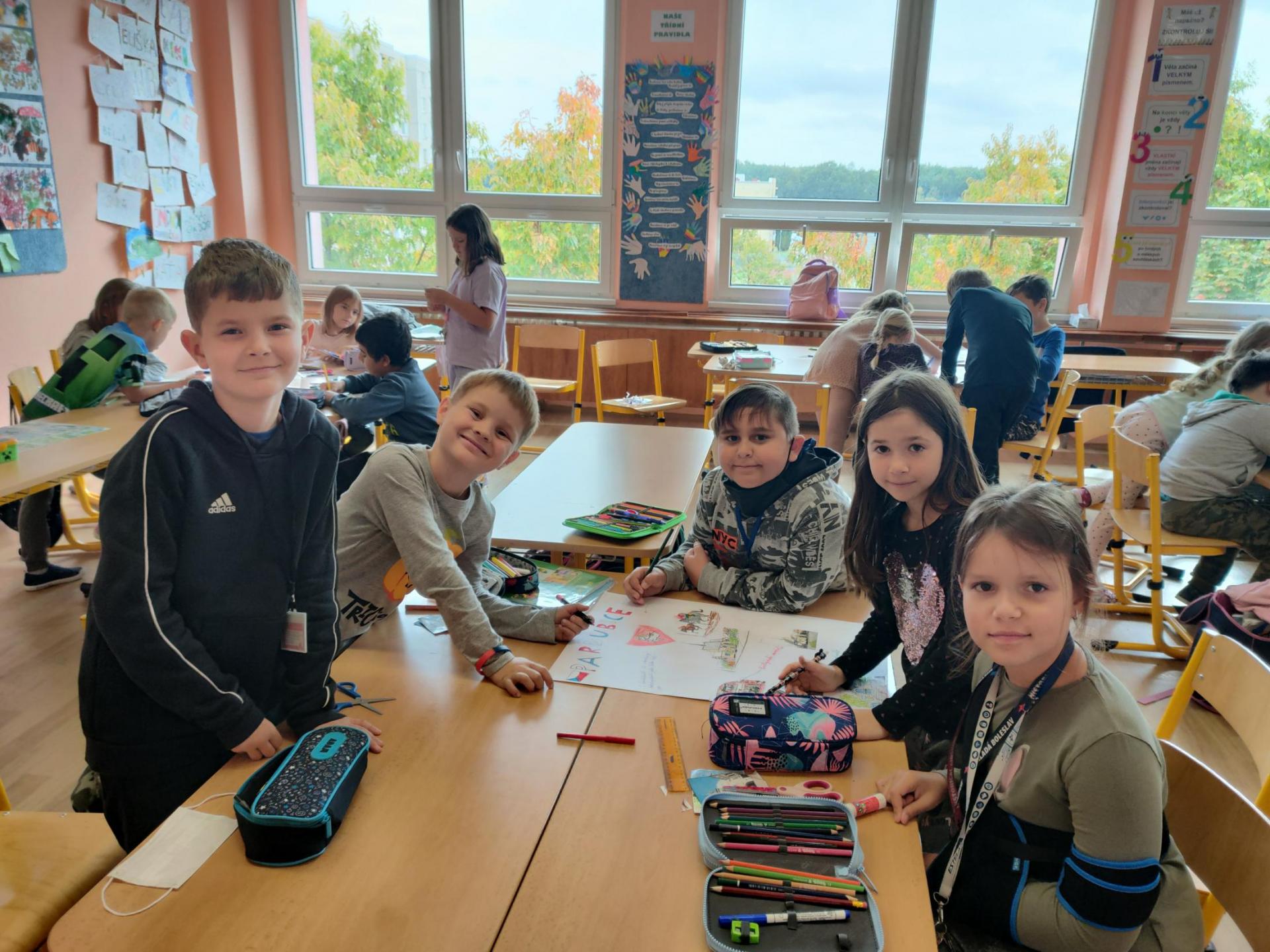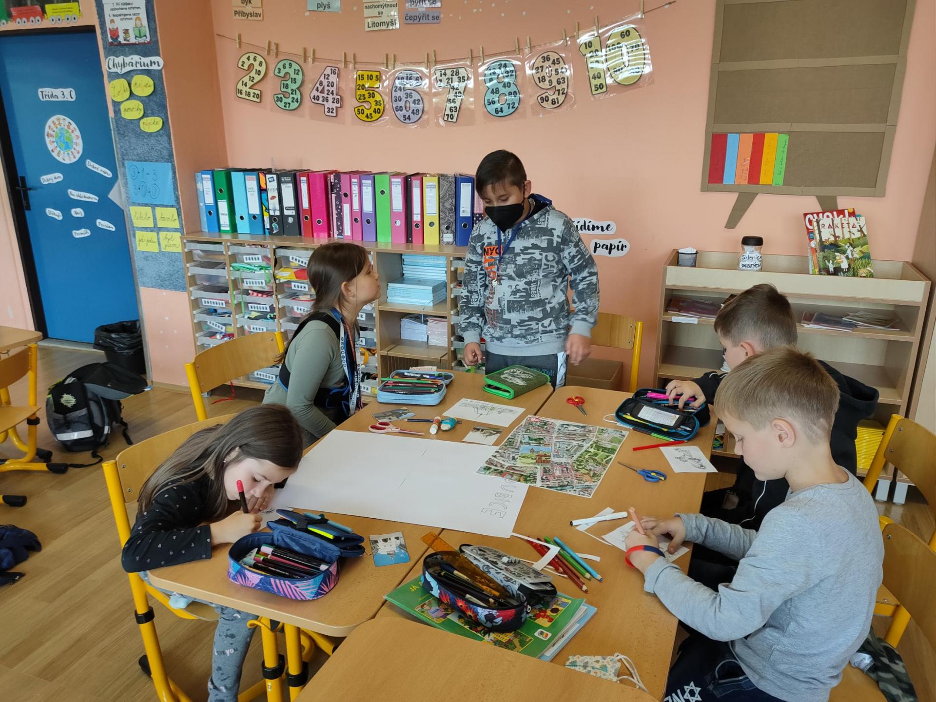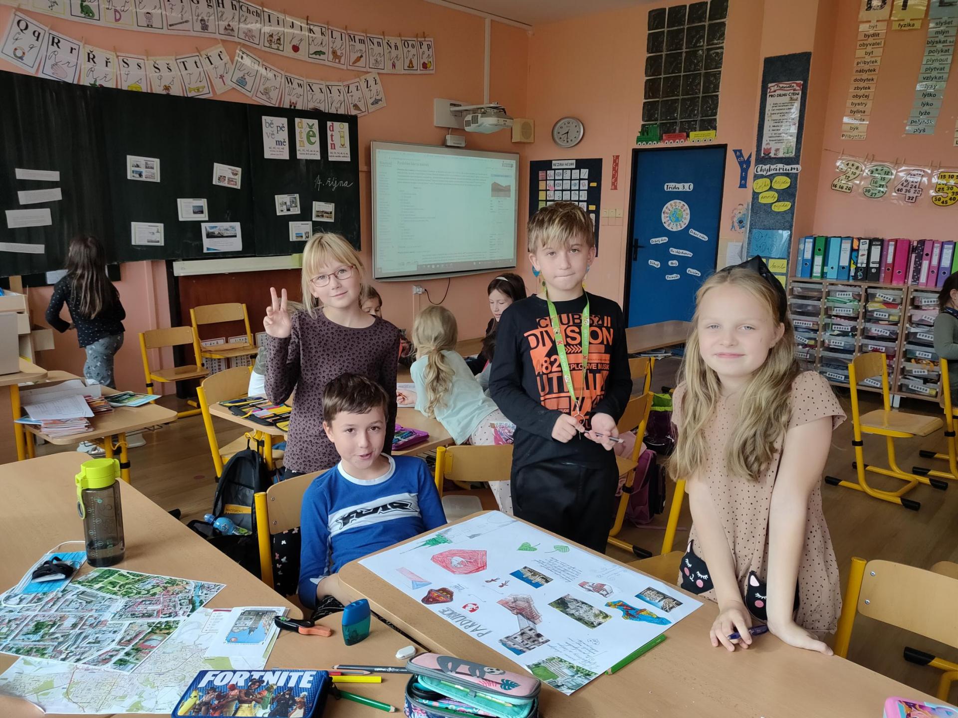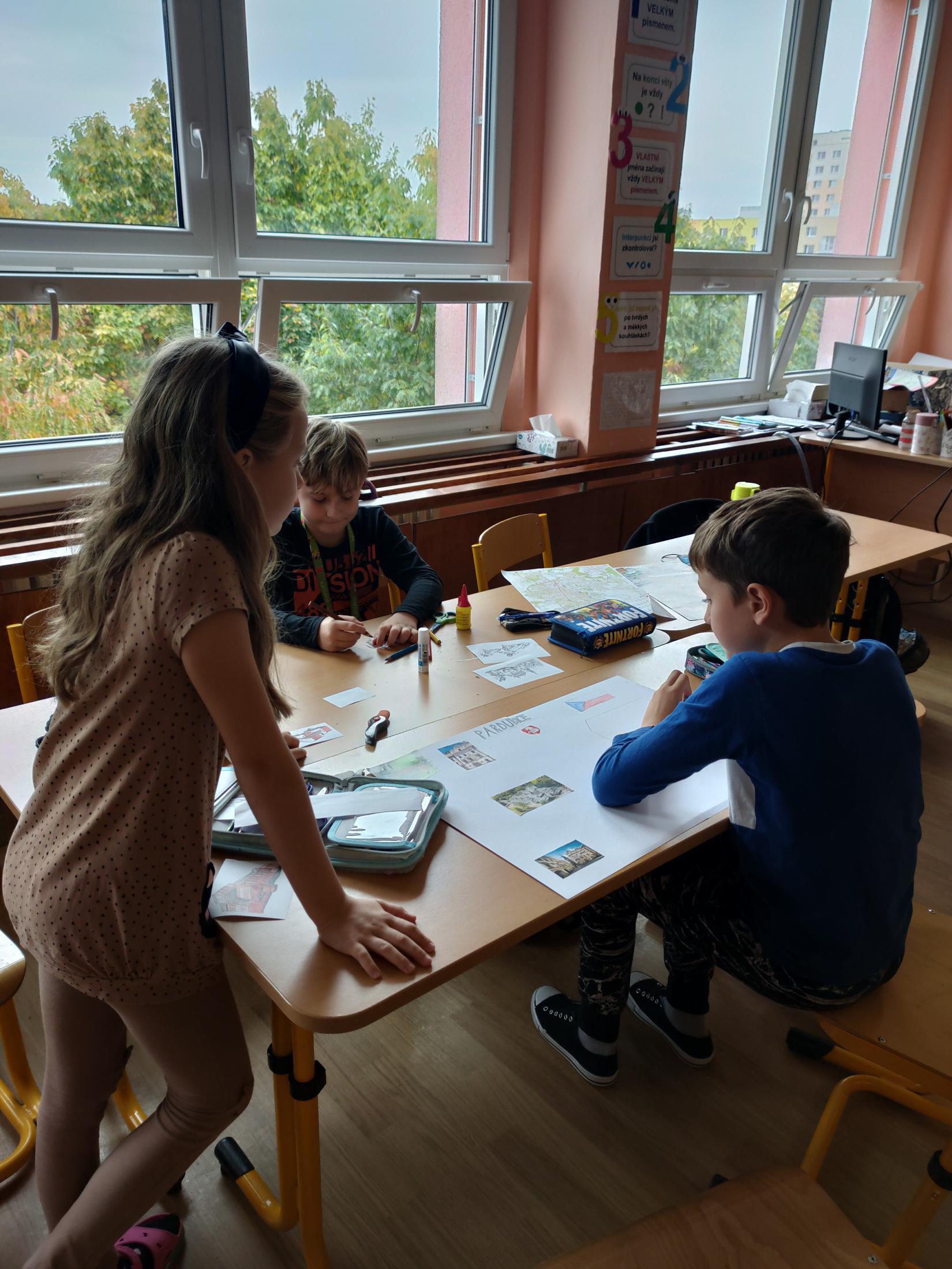 Učíme se spolupracovat. Ve skupinkách jsme vytvářeli plakáty o Pardubicích, vyhledávali informace a kreslili obrázky. Moc se nám to povedlo! Doma v karanténě to ve skupině moc nešlo, ale i tak jsme to zvládli.