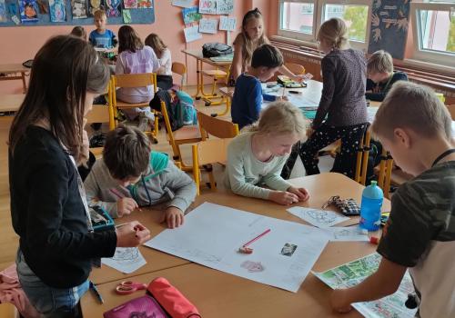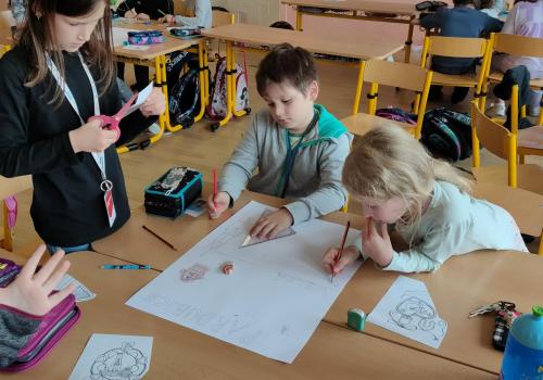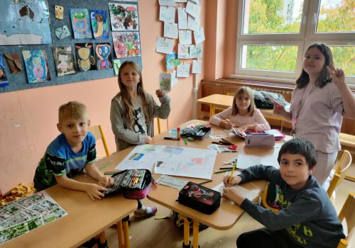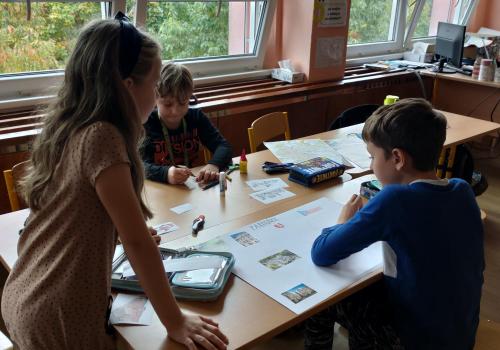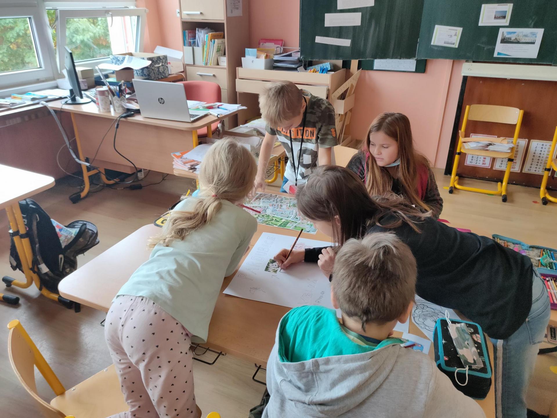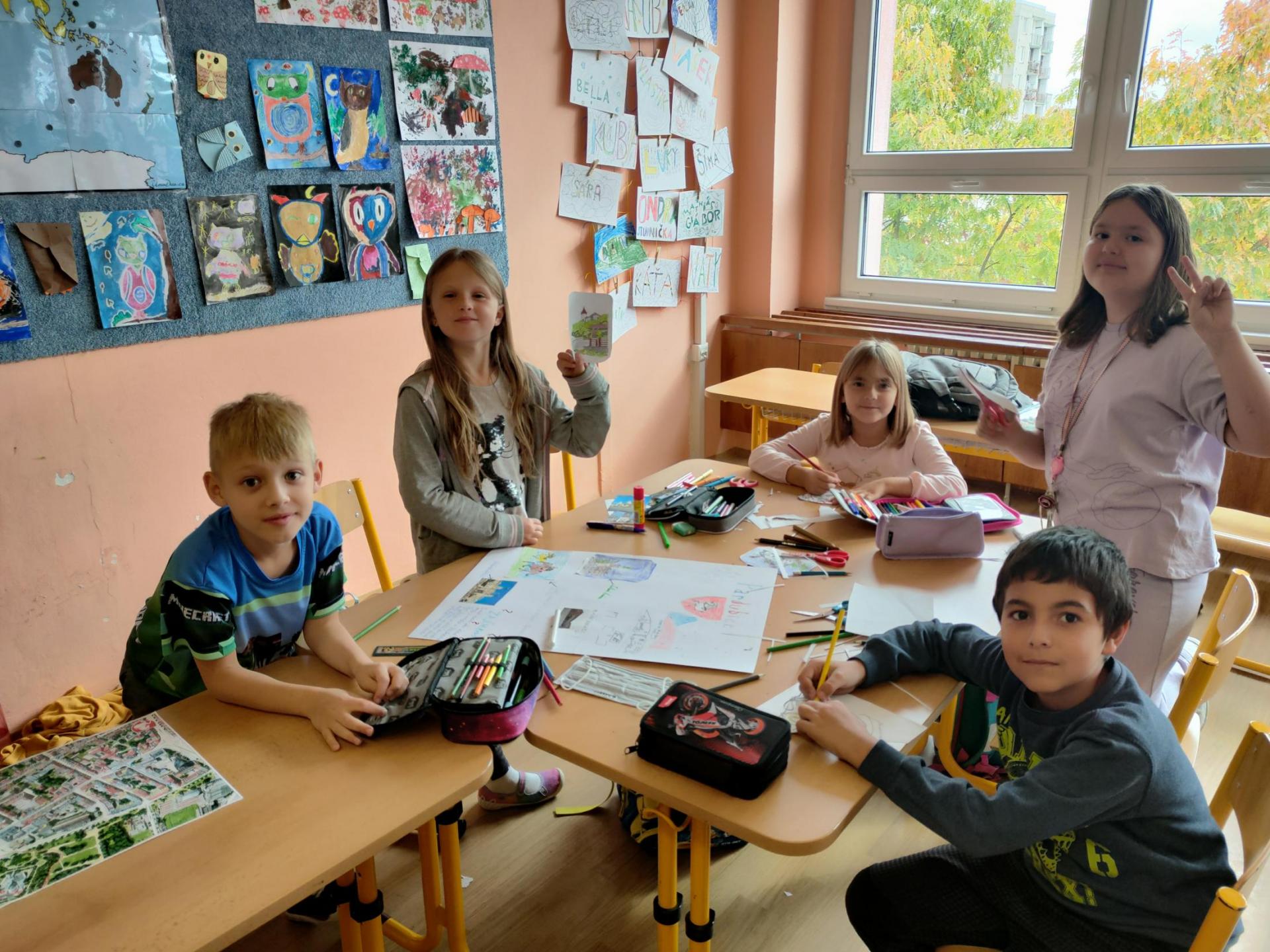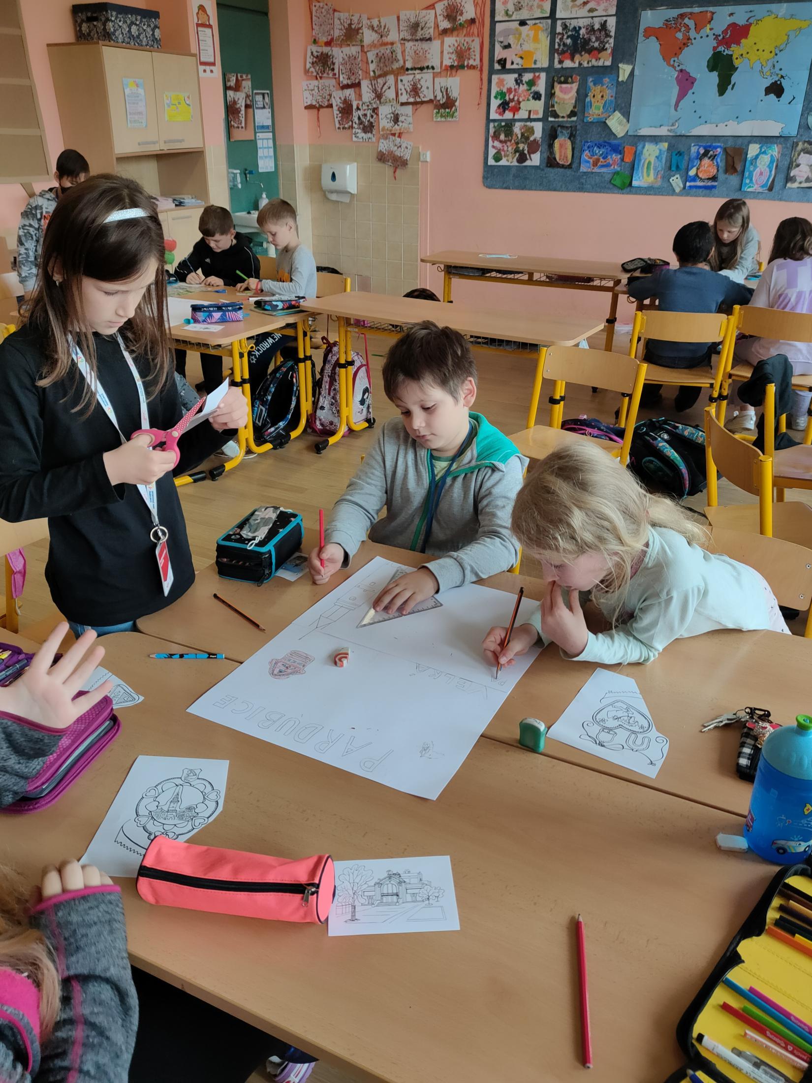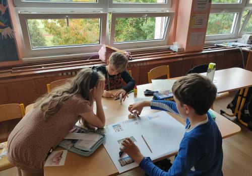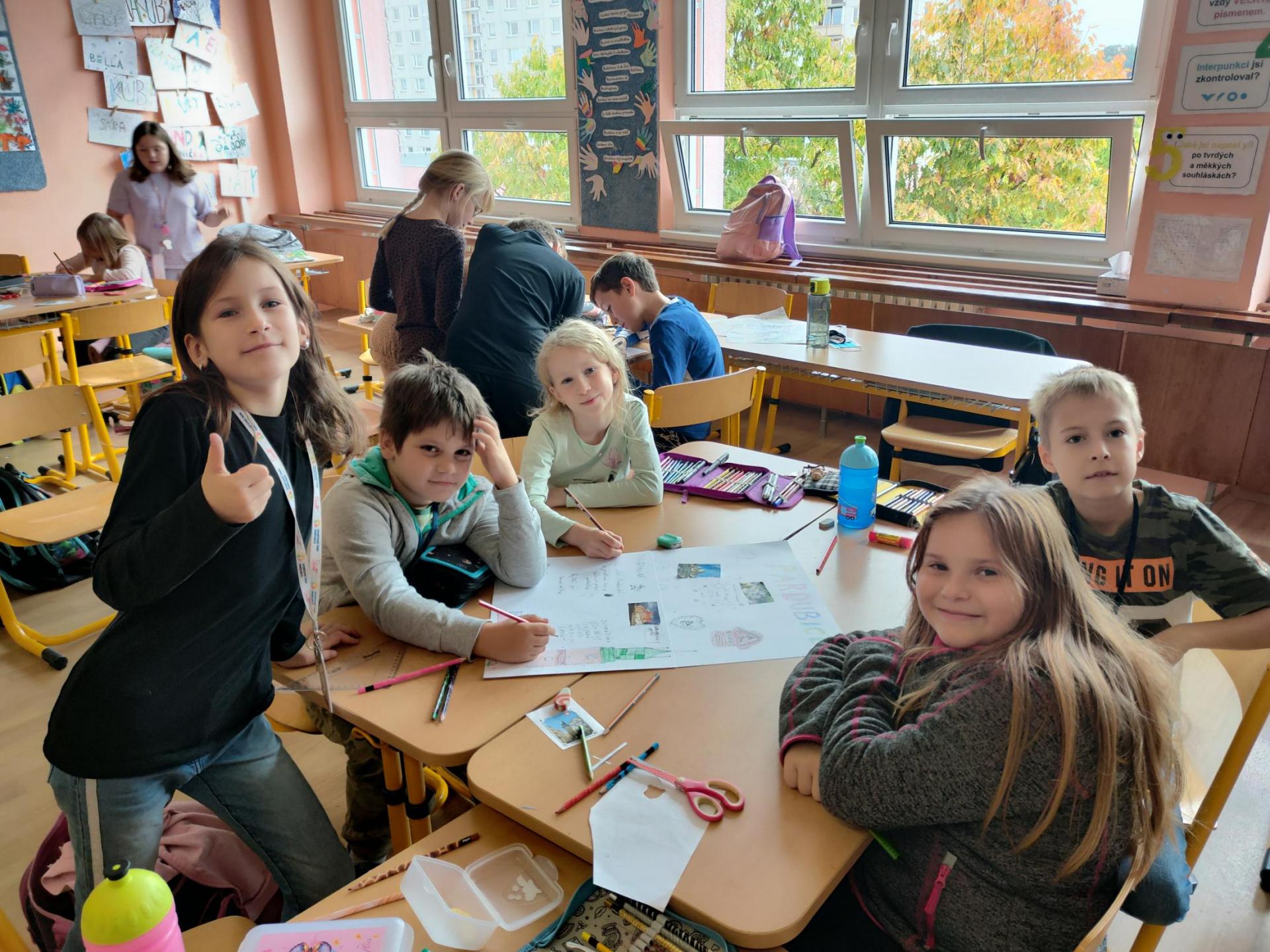 Učíme se spolupracovat. Ve skupinkách jsme vytvářeli plakáty o Pardubicích, vyhledávali informace a kreslili obrázky. Moc se nám to povedlo! Doma v karanténě to ve skupině moc nešlo, ale i tak jsme to zvládli.