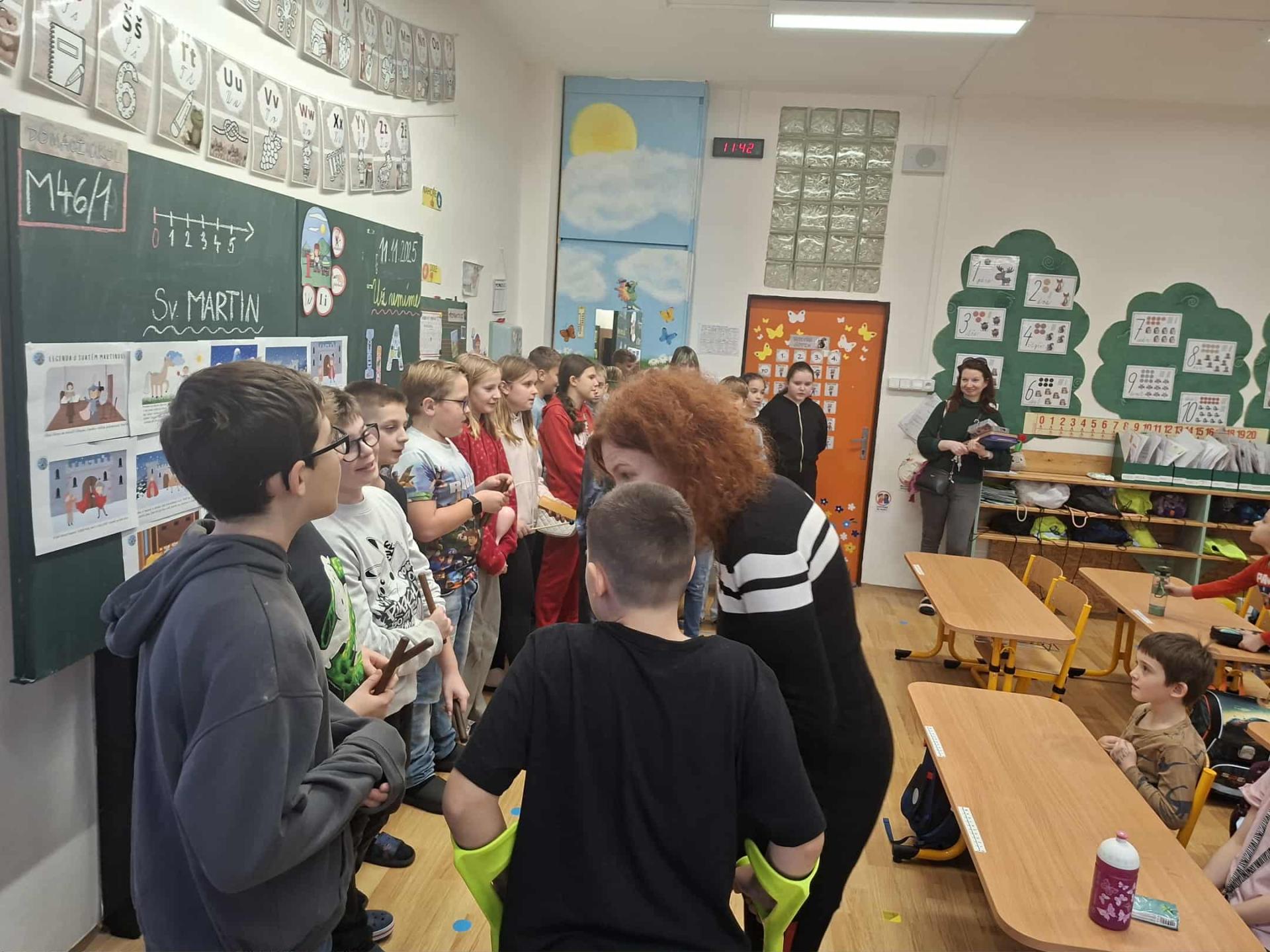 Během dopoledne k nám také přišli zazpívat spolužáci z páté třídy, kteří si pro nás připravili krásné písničky o Martinovi a jeho bílém koni. Všichni jsme si společně užili příjemnou sváteční atmosféru.