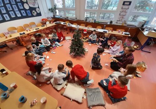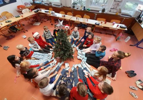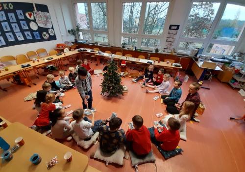 Poslední školní den v roce 2025 jsme společně prožili v příjemné atmosféře na vánoční besídce. Třída vypadala úplně jinak – lavice jsme měli slavnostně uspořádané a vše bylo připravené na velké překvapení. A opravdu! Navštívil nás Ježíšek a nechal nám pod stromečkem dárky.