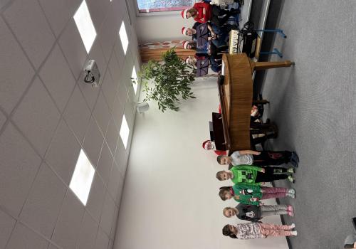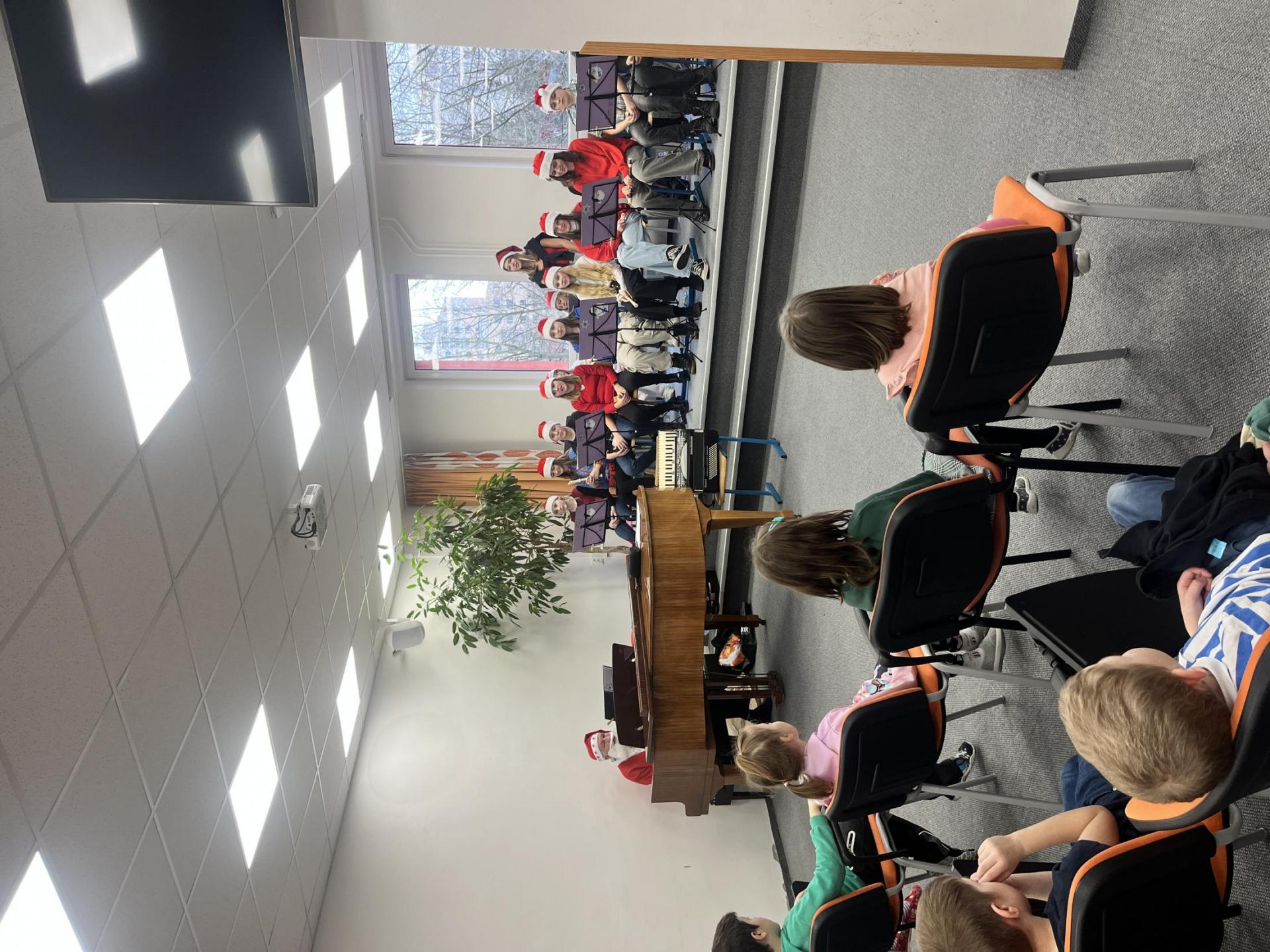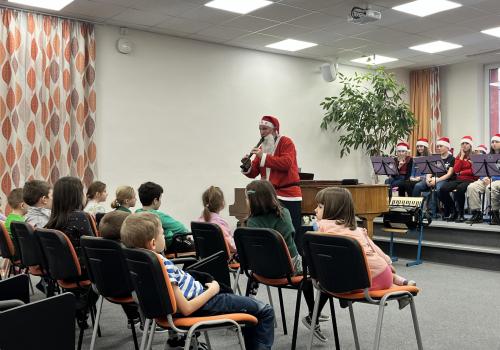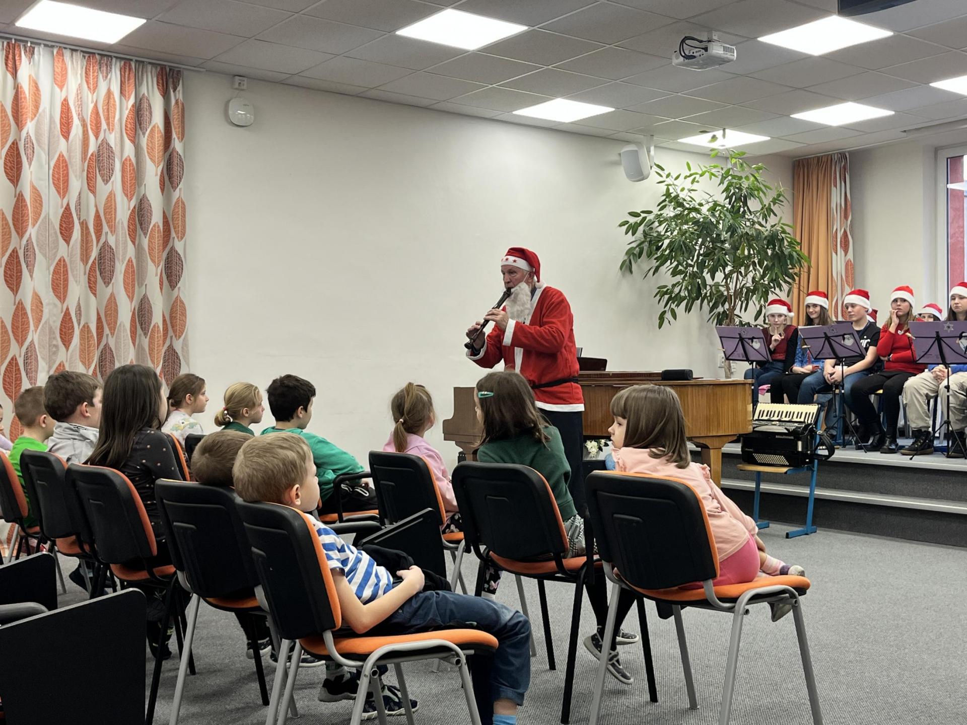 V úterý jsme si šli poslechnout vánoční koncert žáků ze ZUŠ. Moc pěkně hráli a zpívali. Něco jsme si dokonce zazpívali s nimi.