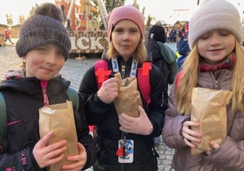 Vydali jsme se na trdelník… a cestou jsme to spojili s vánoční stezkou kolem zámku. Sladká motivace fungovala na jedničku.