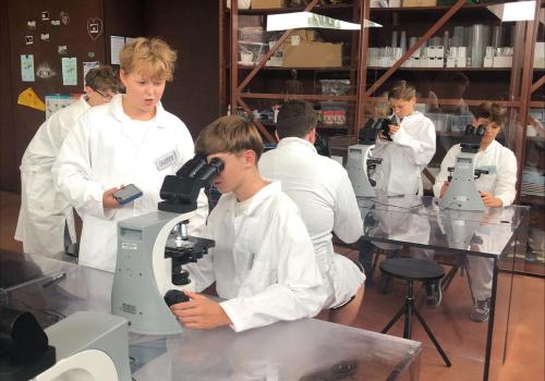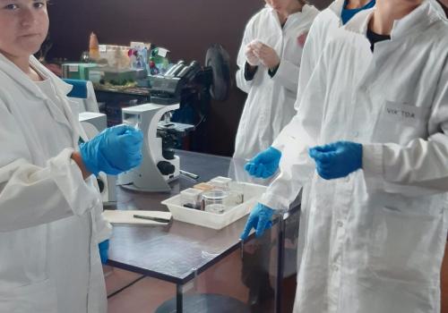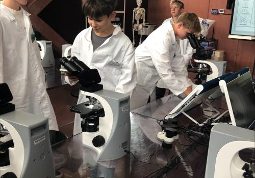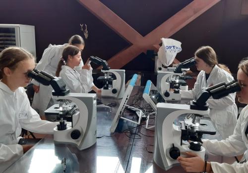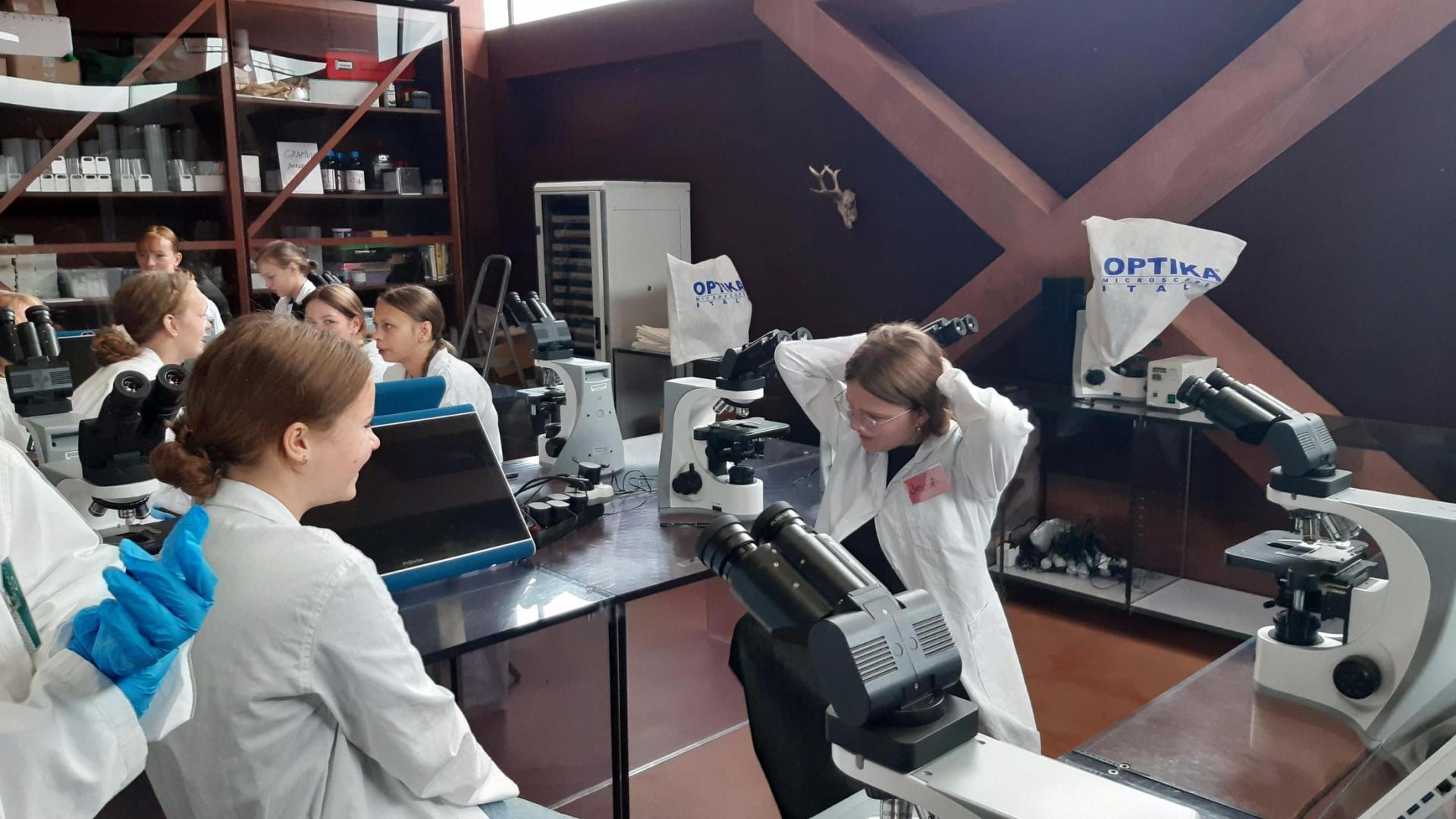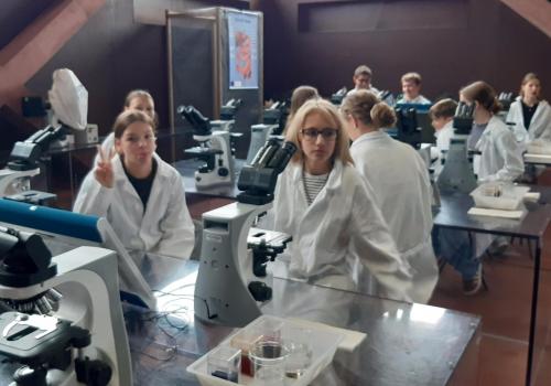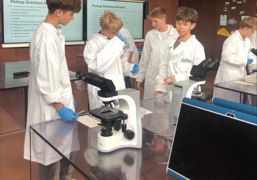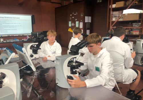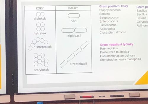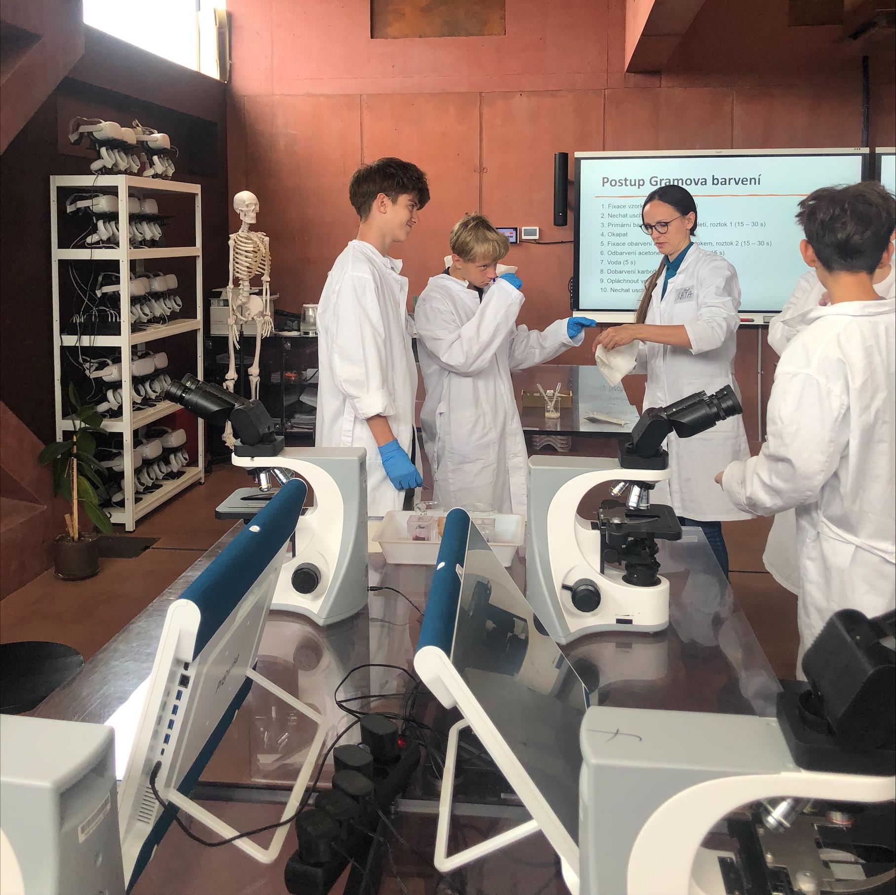 Druhý program byl zaměřený na přírodopis a jmenoval se Mikrosvět v puse. Dozvěděli jsme se, jak je důležitý mikrobiom, který máme ve střevech. Naše střeva jsou zoologická zahrada, kde žije až 1 kg bakterií. Některé bakterie jsou důležité (pomáhají tvořit vitamíny), jiné jsou škodlivé (vedou k nemocem). Naše strava ovlivňuje, které bakterie ve střevech budeme mít. Mikrobiom stimuluje imunitní systém a jeho nerovnováha vede k nemocem. Pomocí Gramova barvení jsme pod mikroskopem pozorovali obsah ústní dutiny. Dozvěděli jsme se, že koky jsou kolečka a bacily tyčinky, a že bakterie jsou větší než viry.