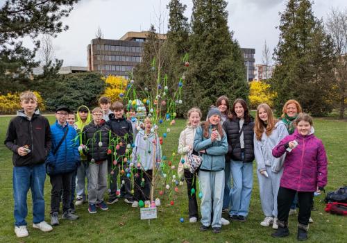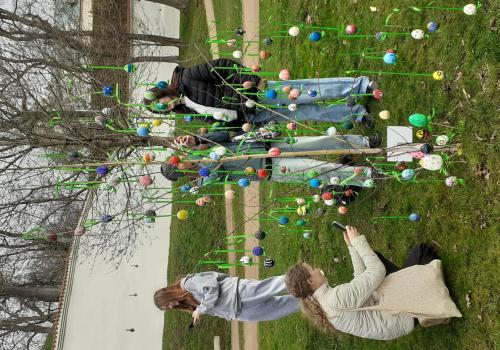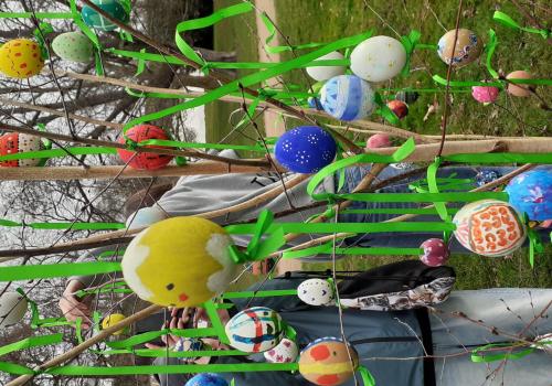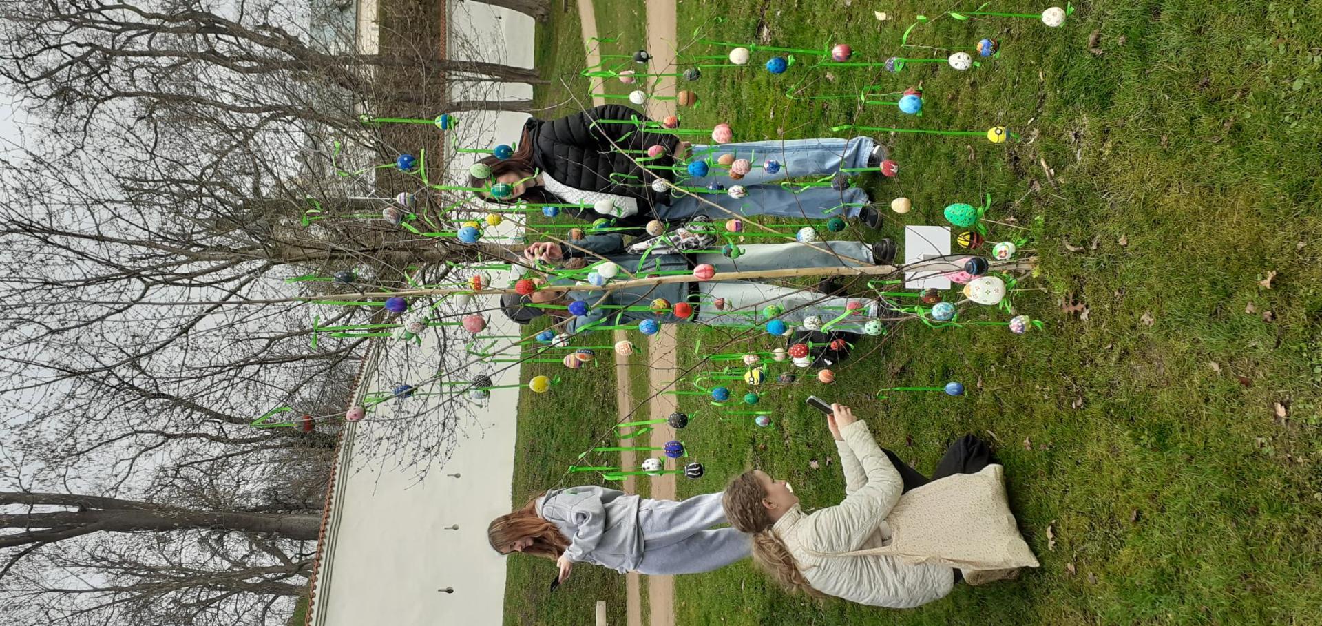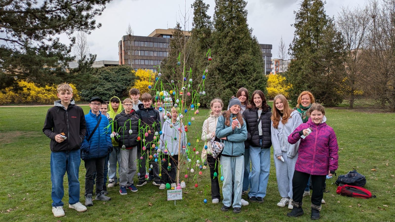 Dne 26.3. 2026 se žáci 7.C zúčastnili velikonoční akce v Tyršových sadech. Břízu, určenou pro naši školu, ozdobili kraslicemi, které omalovali žáci 2.stupně.