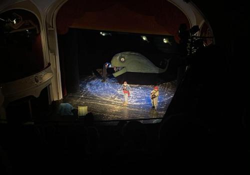 Slavnostně oblečení jsme se dnes ráno vydali směrem do Východočeského divadla, kam jsme zavítali na představení Kolíbá se velryba. Představení vyprávělo příběh dvou pirátů, které spolkla velryba, aby se napravili a přestali loupit na své pirátské lodi. Nakonec vše dobře dopadlo. Dětem se představení velmi líbilo a ve škole jsme ho ještě výtvarně ztvárnili na papír.