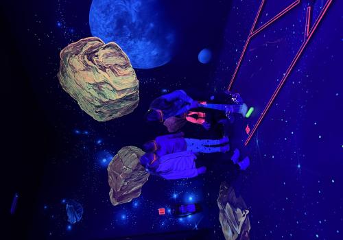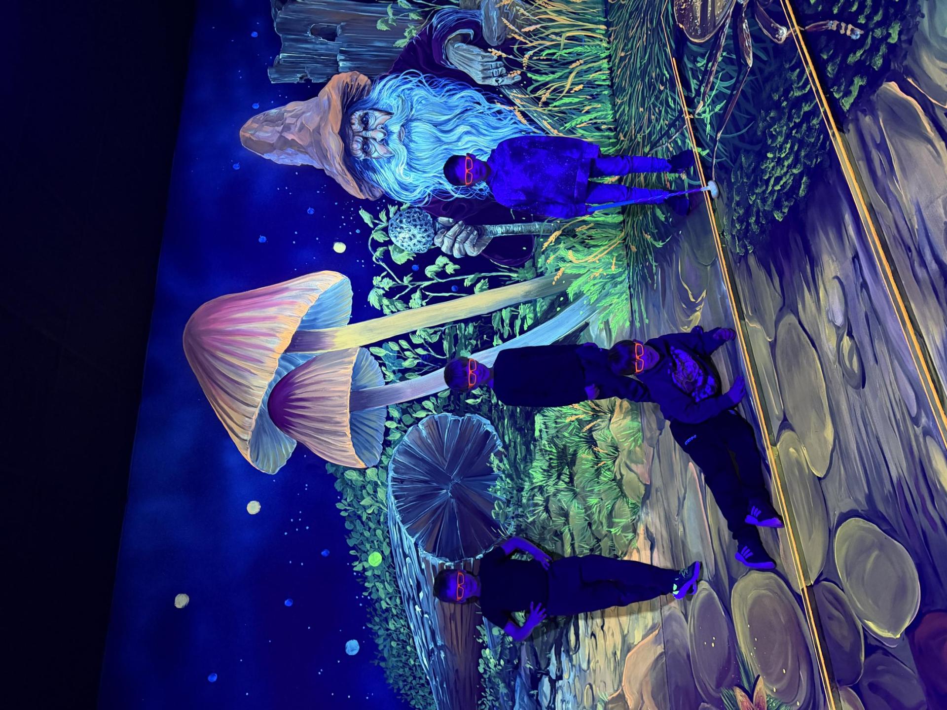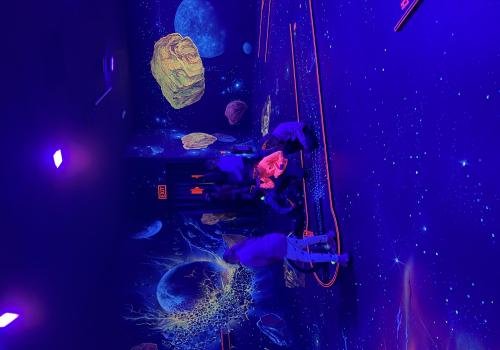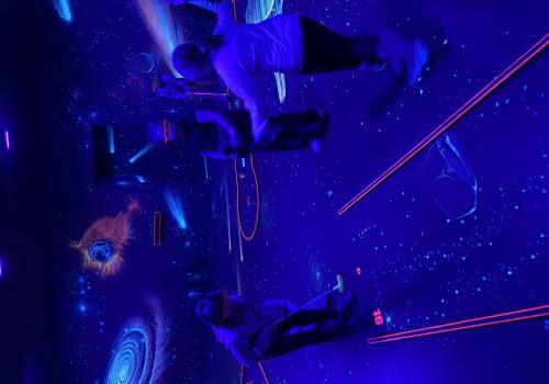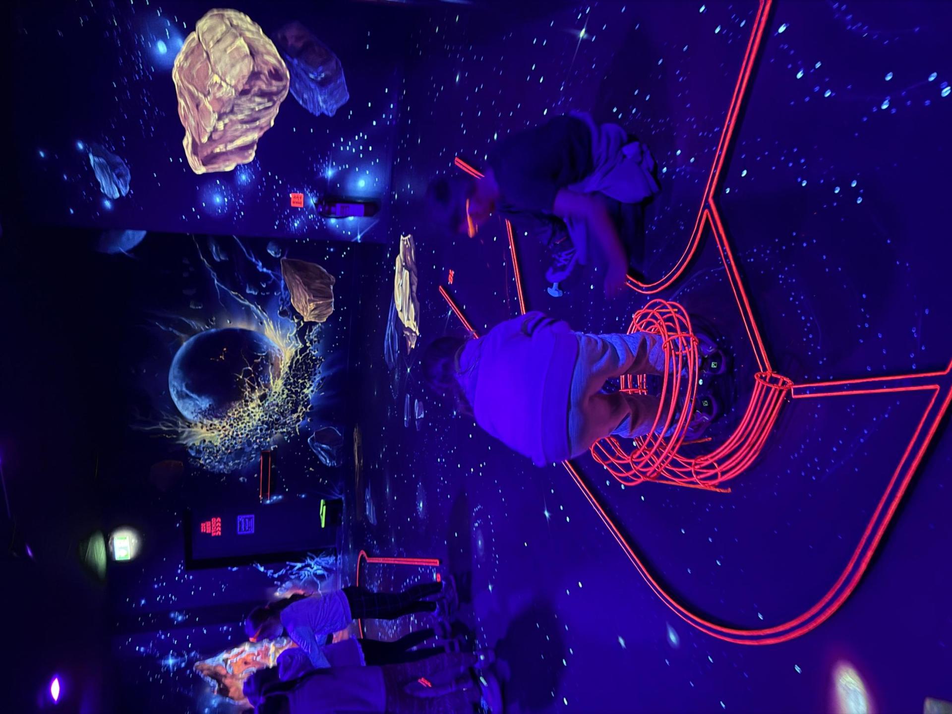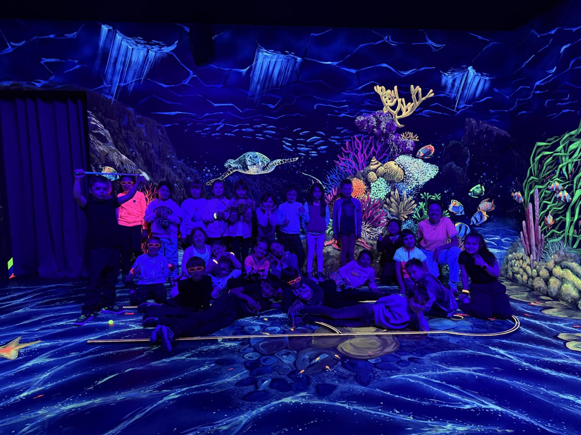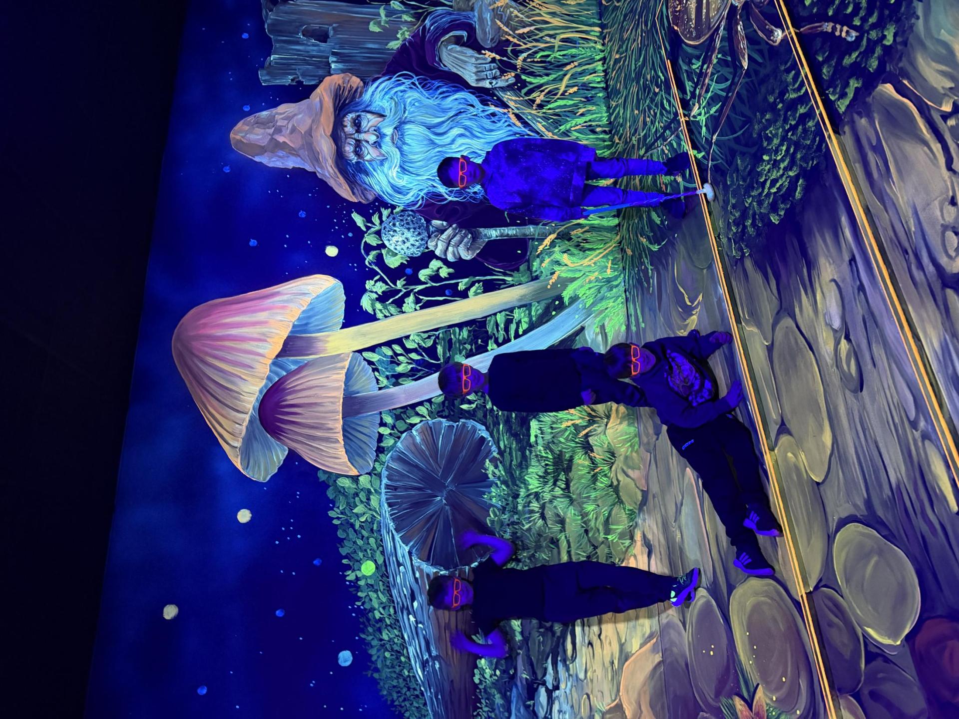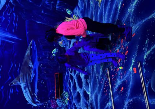 Vydali jsme se vlakem, projeli okružní jízdu Hradcem až jsme dorazili na 3D Black Light Minigolf.