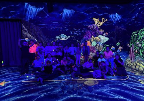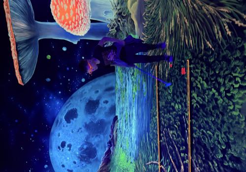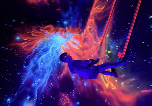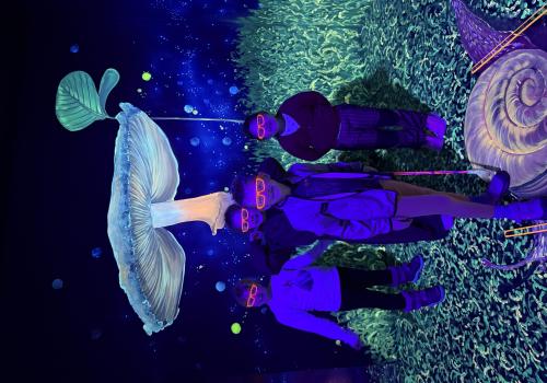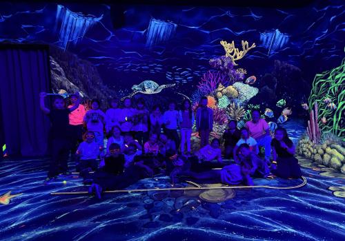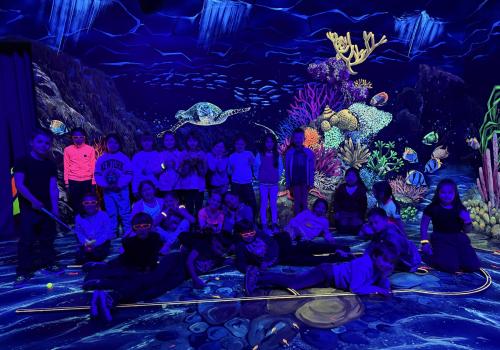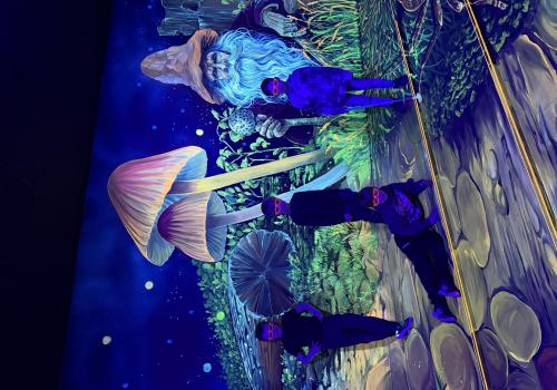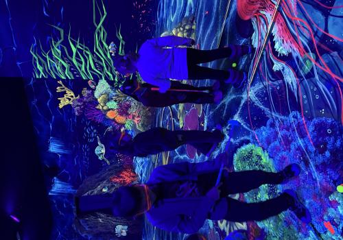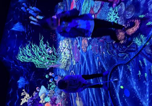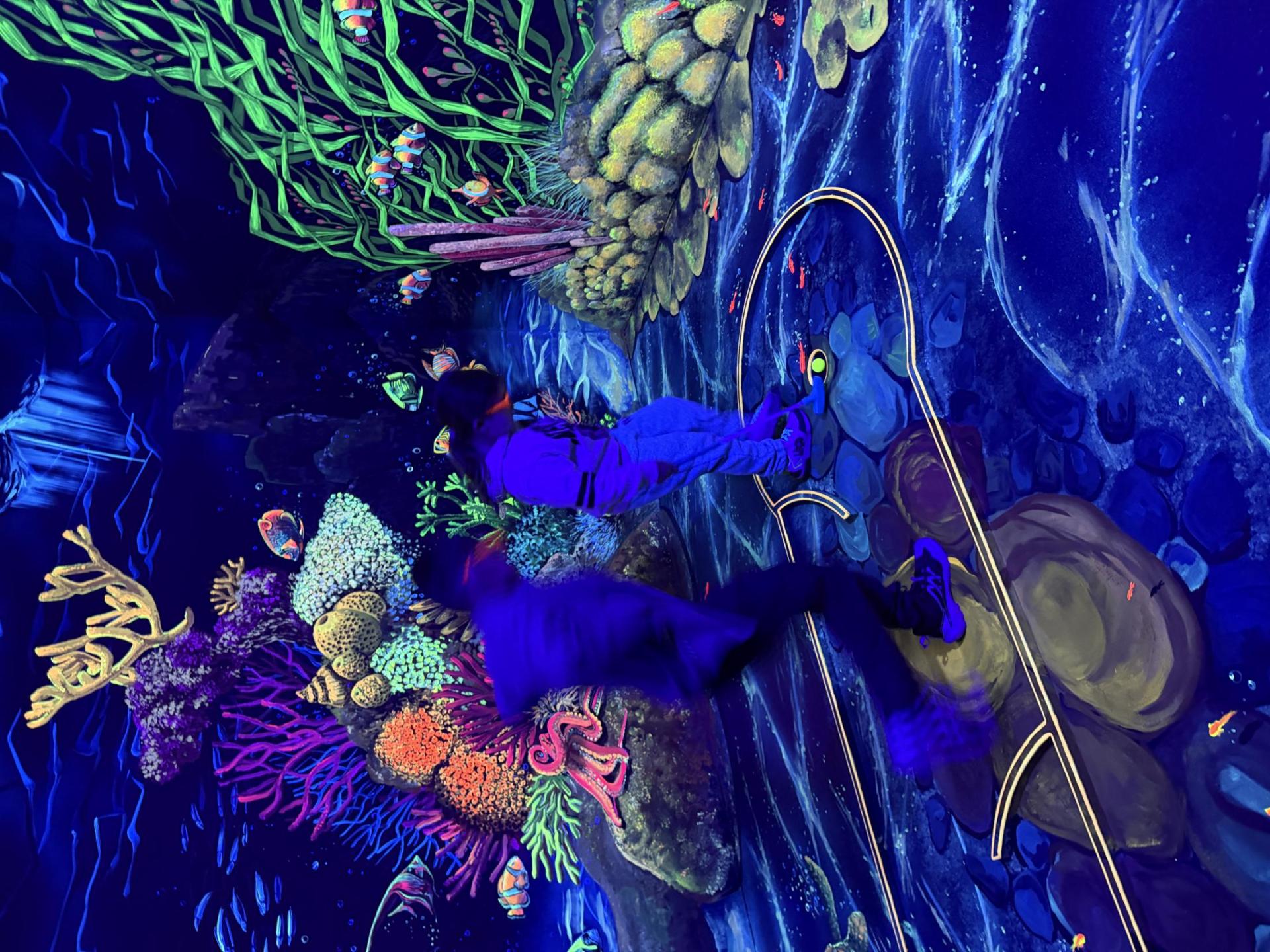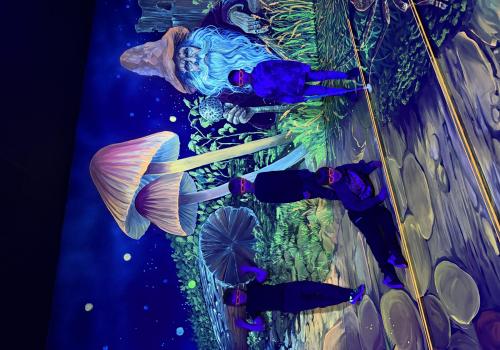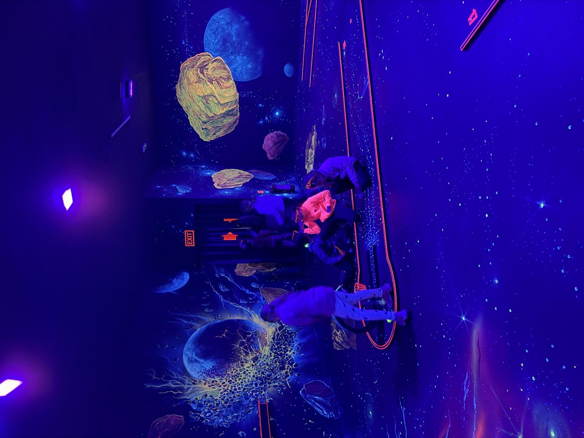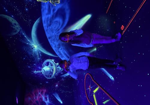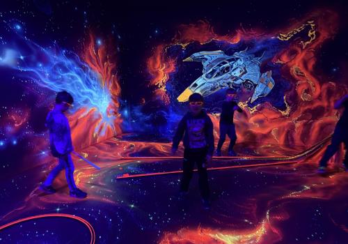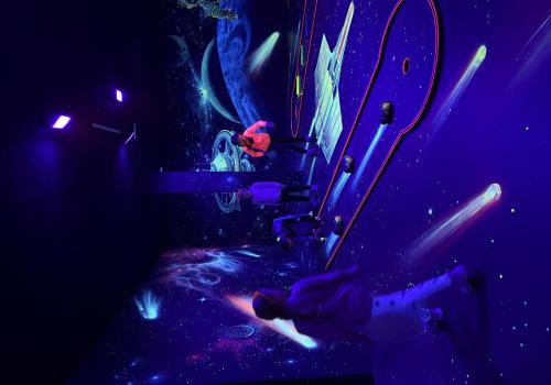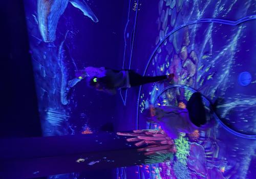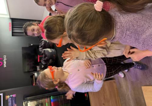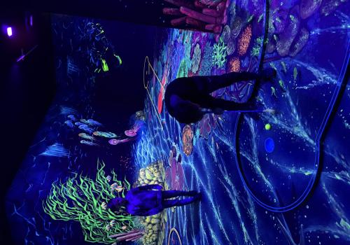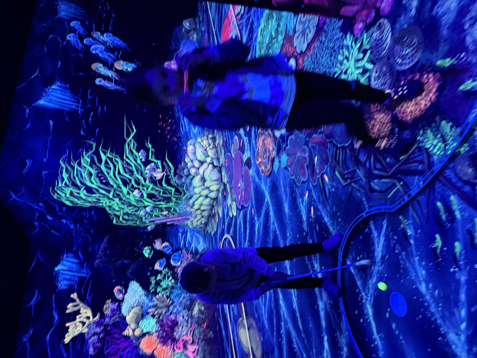 Vydali jsme se vlakem, projeli okružní jízdu Hradcem až jsme dorazili na 3D Black Light Minigolf.