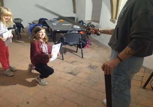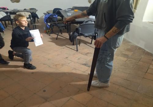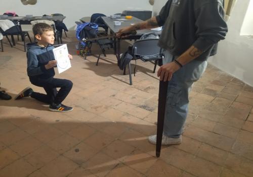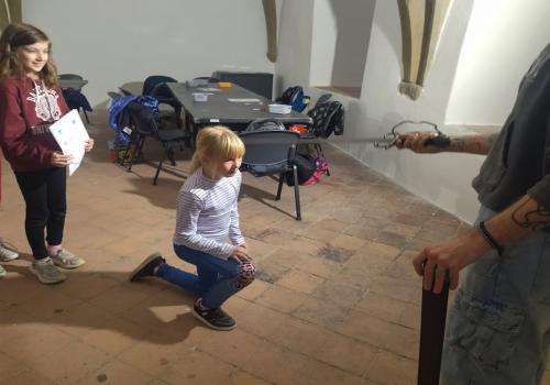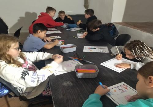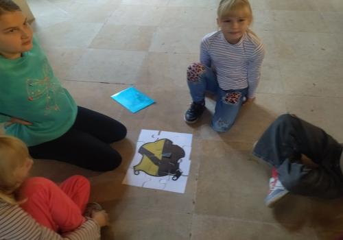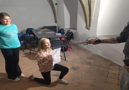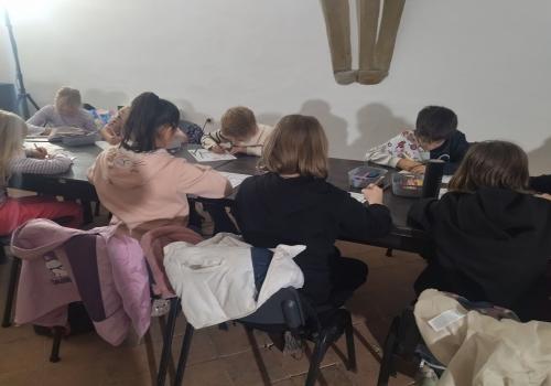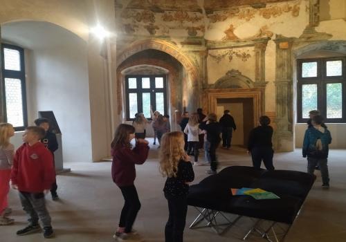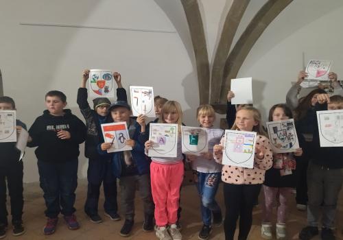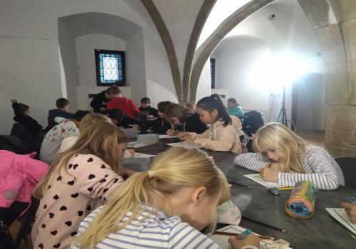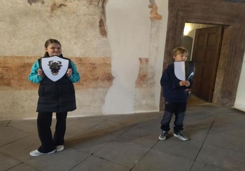 V rámci dějepisného učiva o středověku jsme navštívili pardubický zámek. Prohlédli jsme si rytířský sál, dozvěděli se zajímavé informace o erbech a co je heraldika. Také nás zaujaly historické události z rodu Pernštejnů. Skládali jsme erby s podobiznami osobností rodu Pernštejnů, zkoumali malby v rytířském sále. Tvořit vlastní erb nás bavilo. Závěrem programu jsme byli pasování na rytíře. Program byl akční, zajímavý a vedený zábavnou formou.