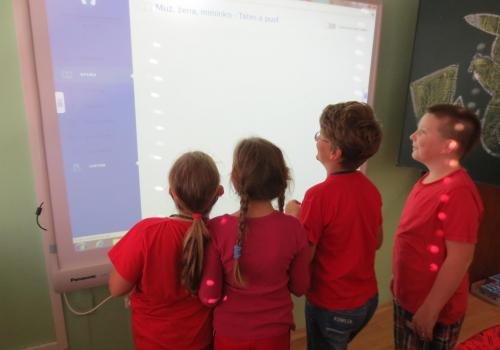 V hodinách AJ pracujeme ve skupinách. Děti rády využívají výuku na interaktivní tabuli, ale i jiné činnosti