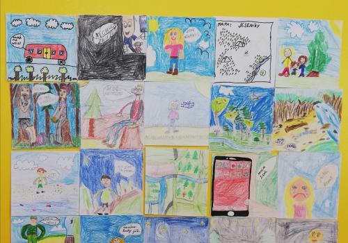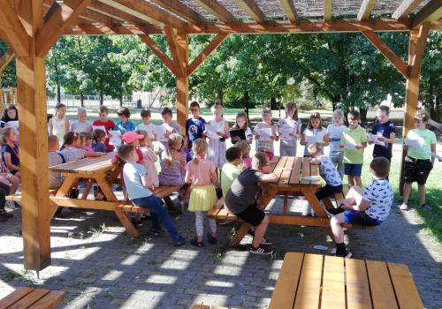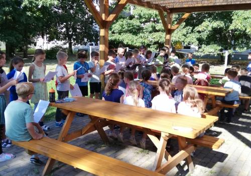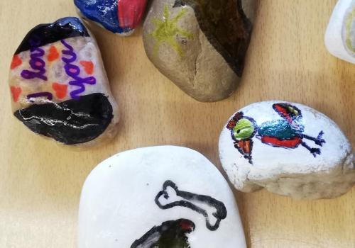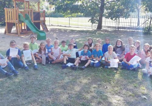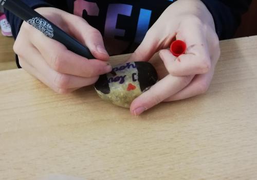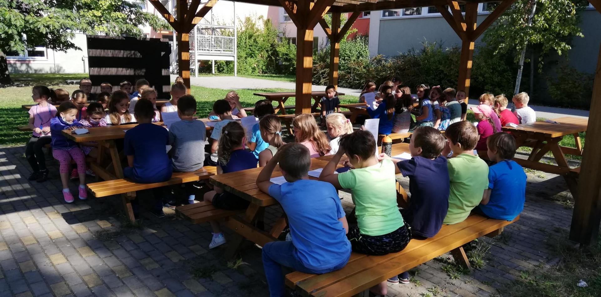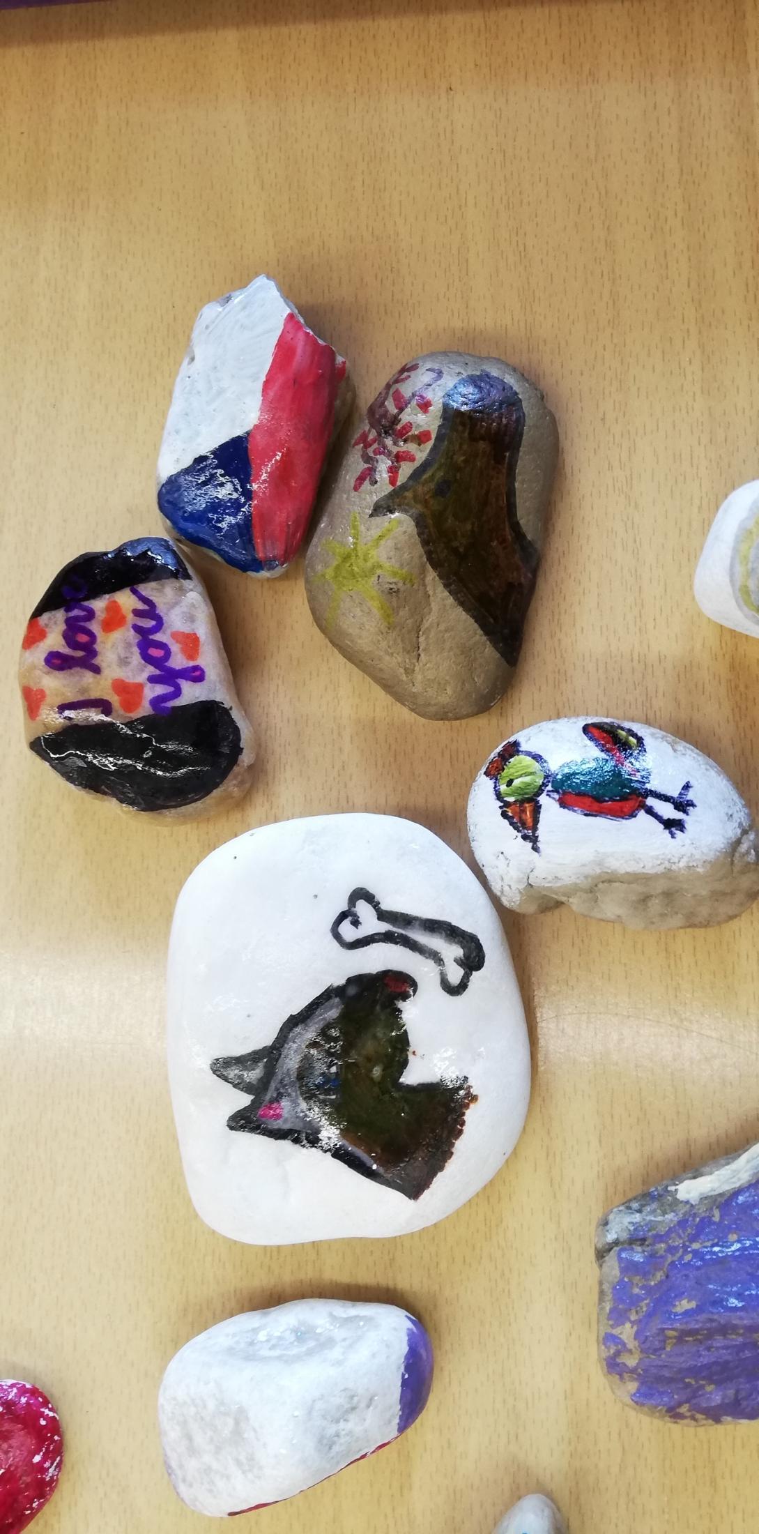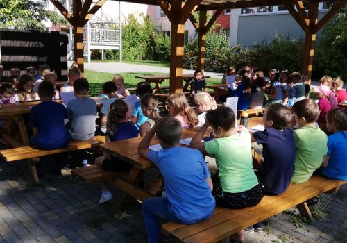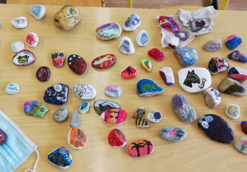 Hned první měsíc ve škole jsme se do toho pořádně pustili a kromě opakování pravopisu, počítání,... jsme také plnili výzvu - přetahování, malování kamínků, rozdávání smajlíků, čtení prvňáčkům, vymýšlení komiksu.