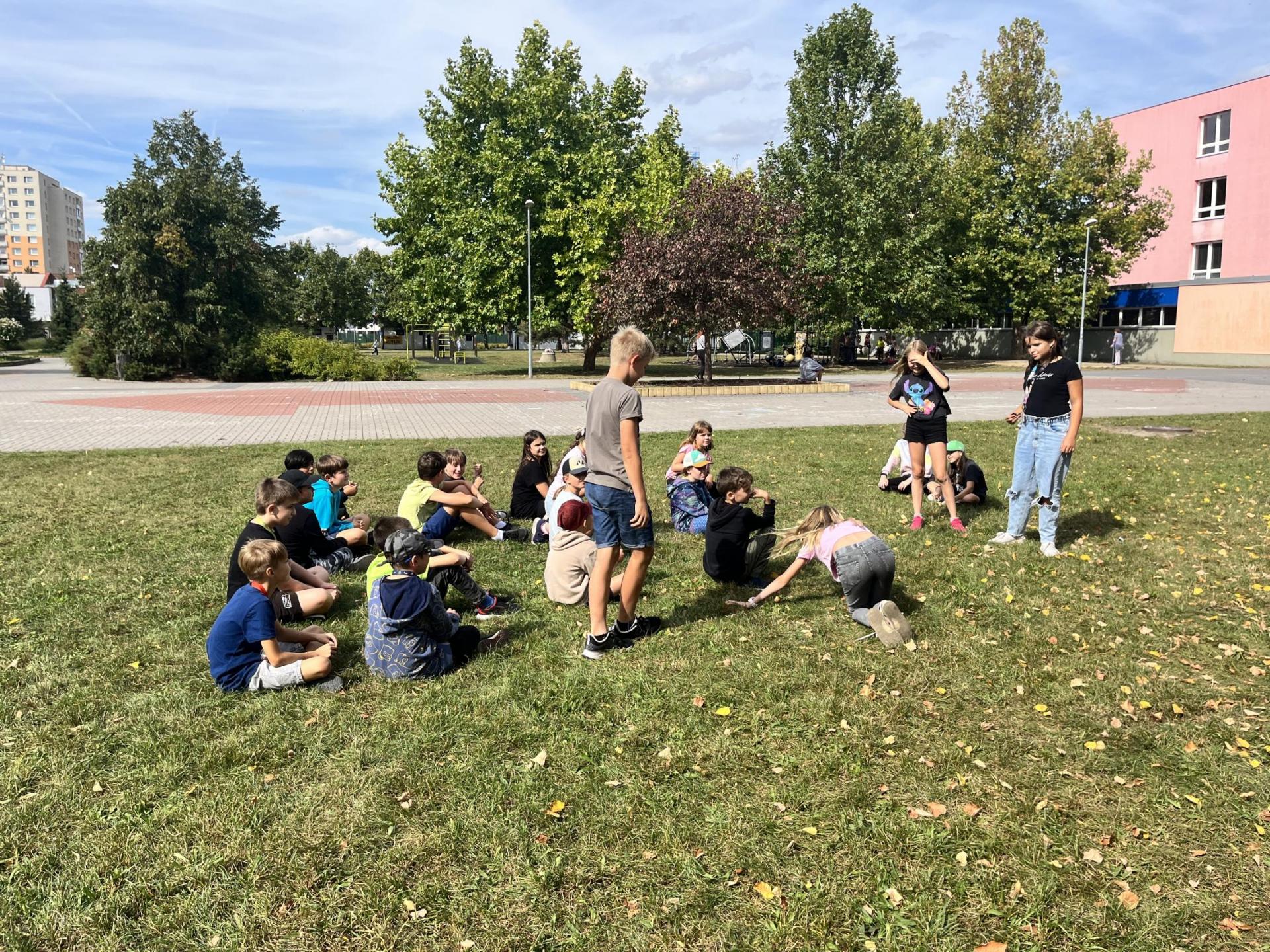 Užíváme si babího léta a chodíme se učit ven. Naše třída je v rekontrukci a družinka plná dětí, proto je nejlepší řešení se učit na trávě se sluníčkem v zádech. ![]()
