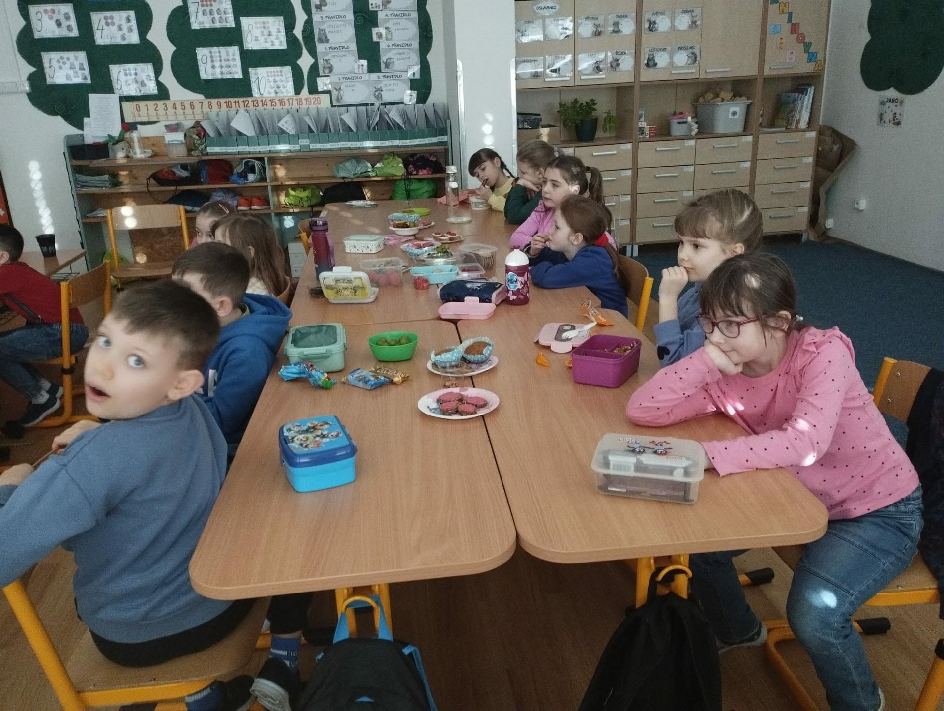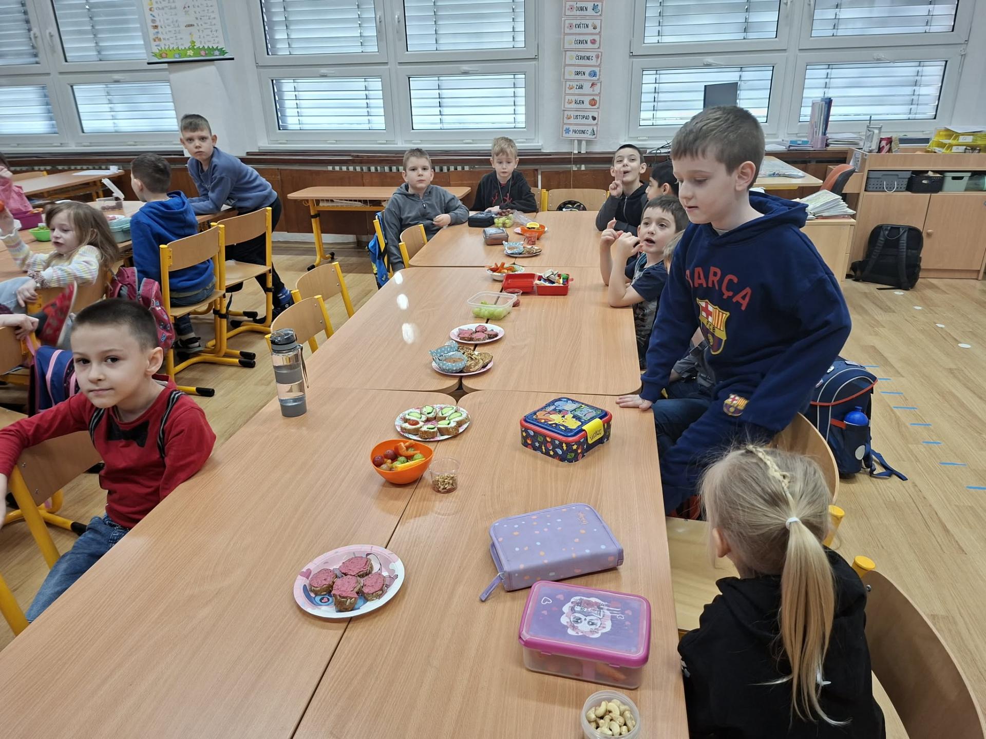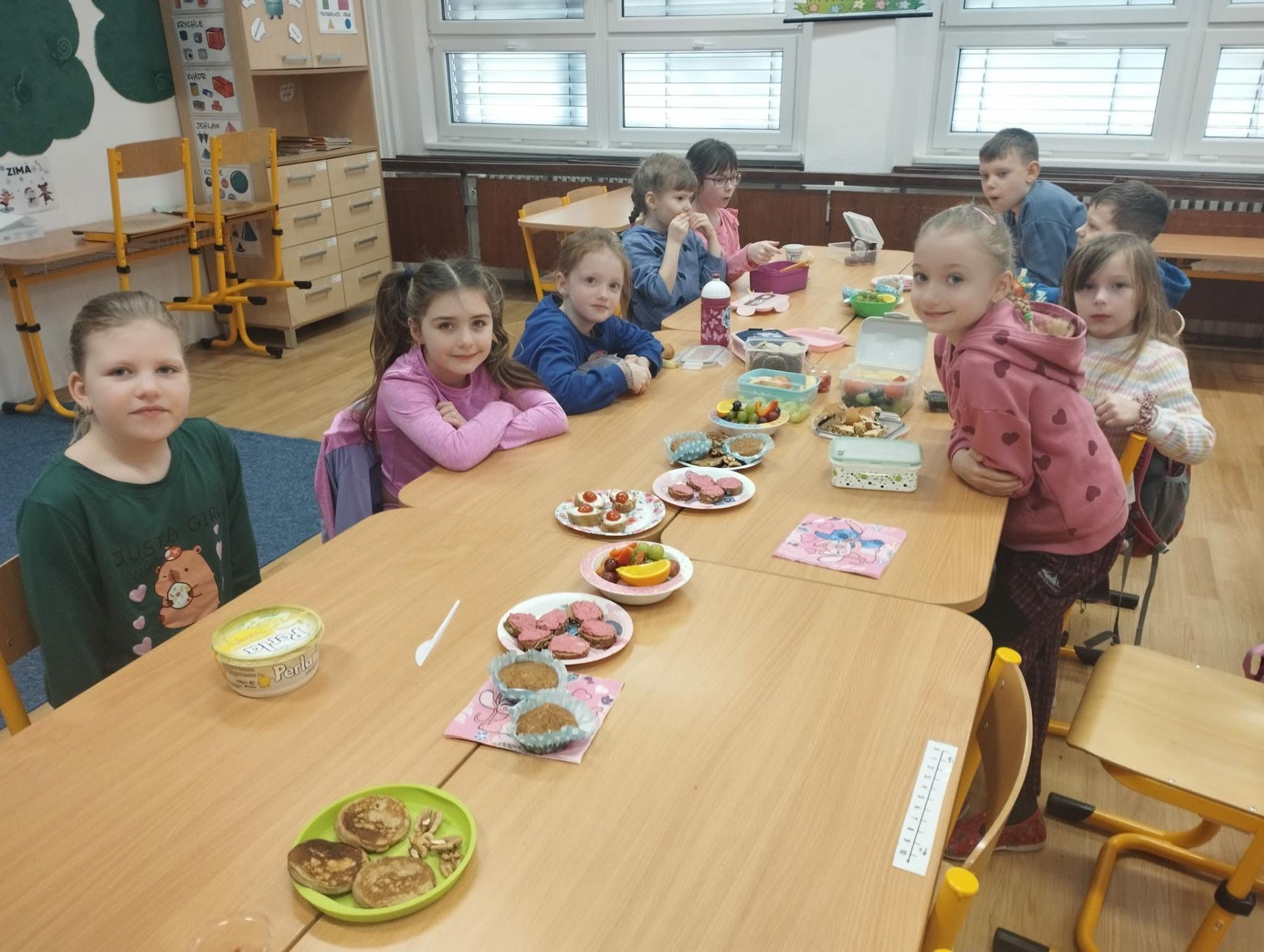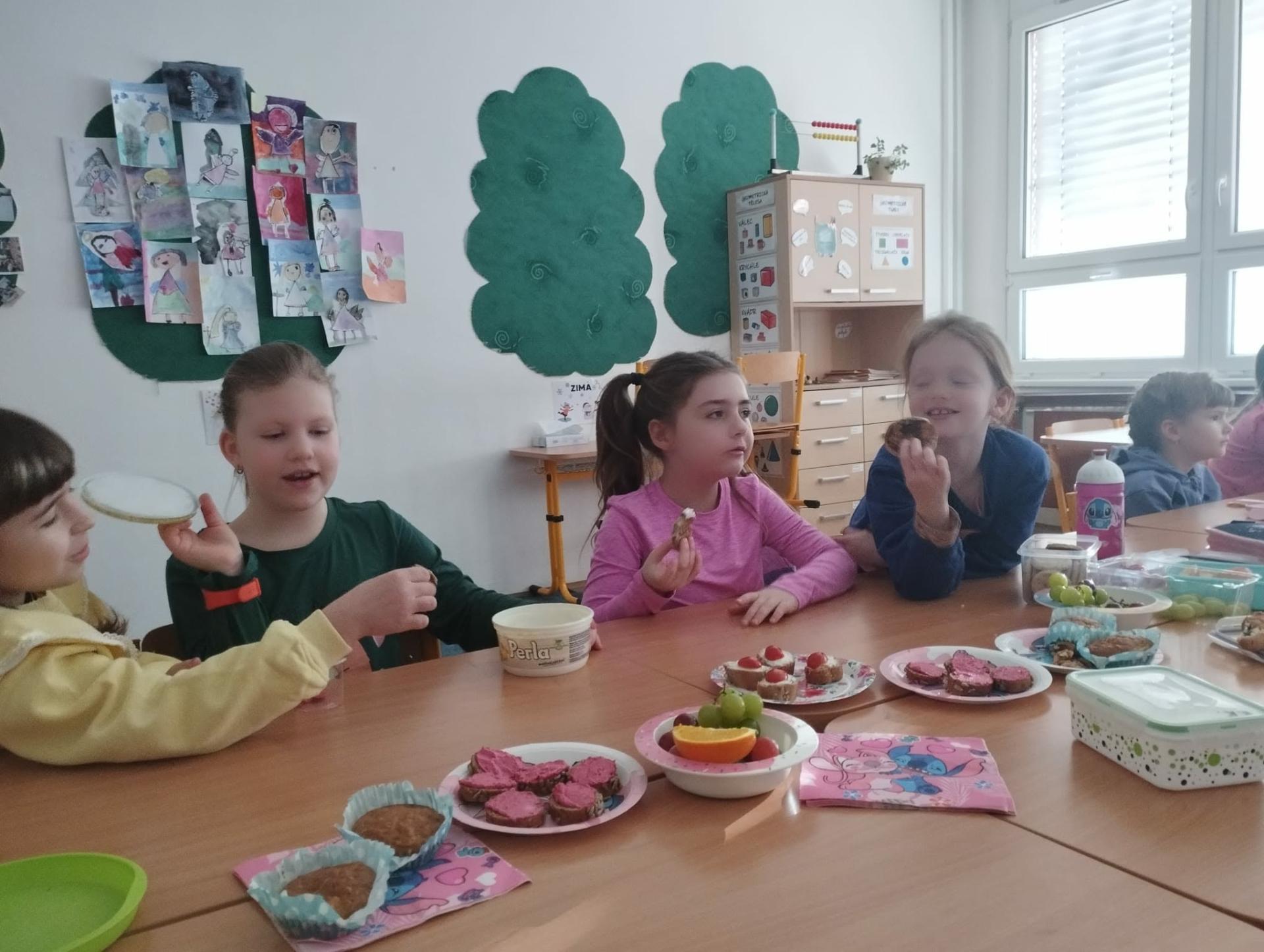 Po pohádce jsme si dali společnou zdravou svačinku. Povídali jsme si o tom, co všechno našemu tělu prospívá, a připomněli jsme si, že ovoce, zelenina a dostatek tekutin jsou důležitou součástí každého dne.