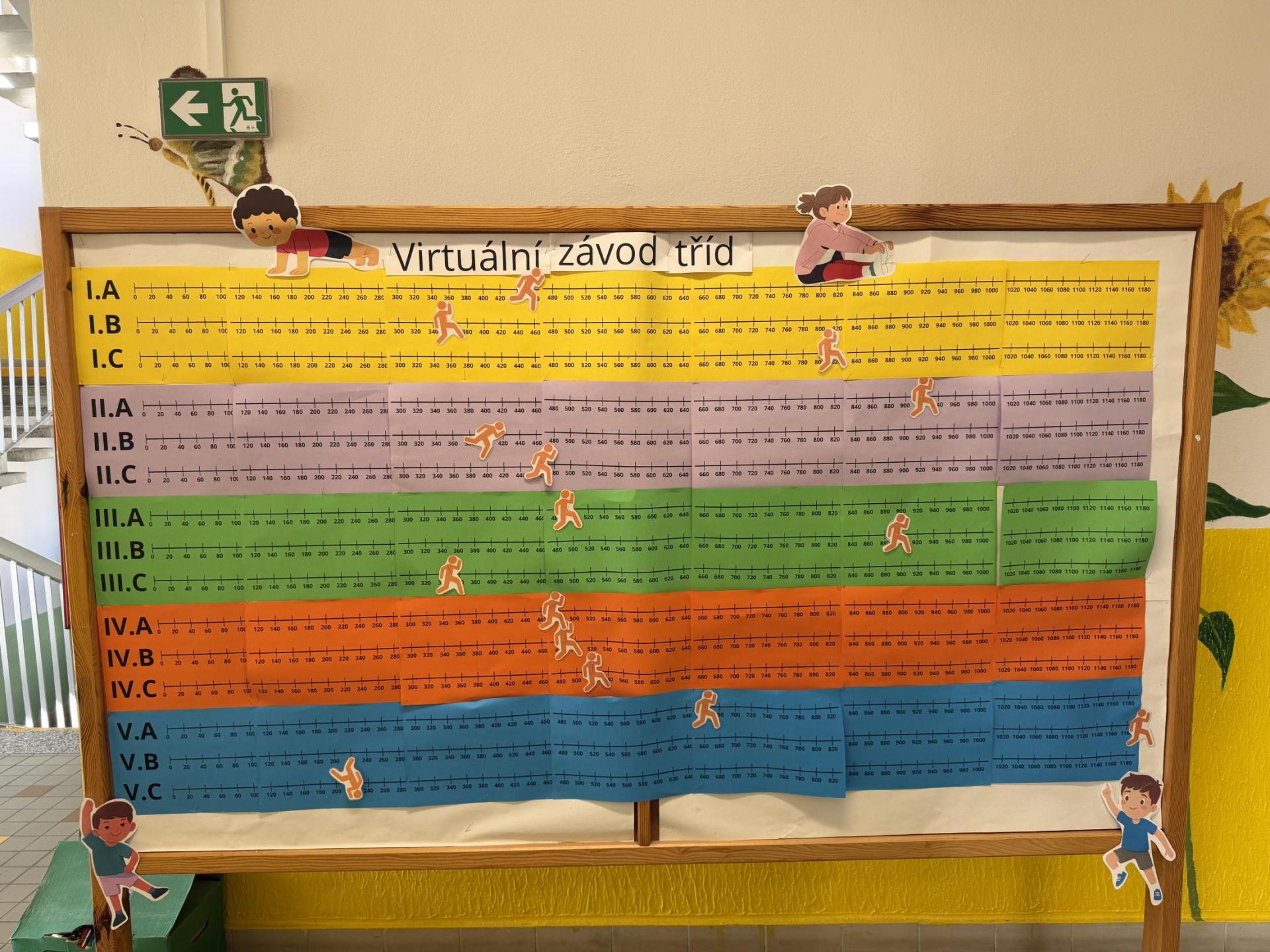 Vyhrála 5.B, která došla až na konec číselné osy na naší nástěnce a tím pokořila hranici 1200 km.